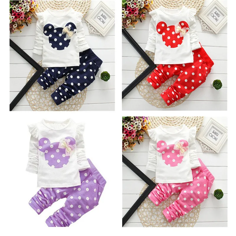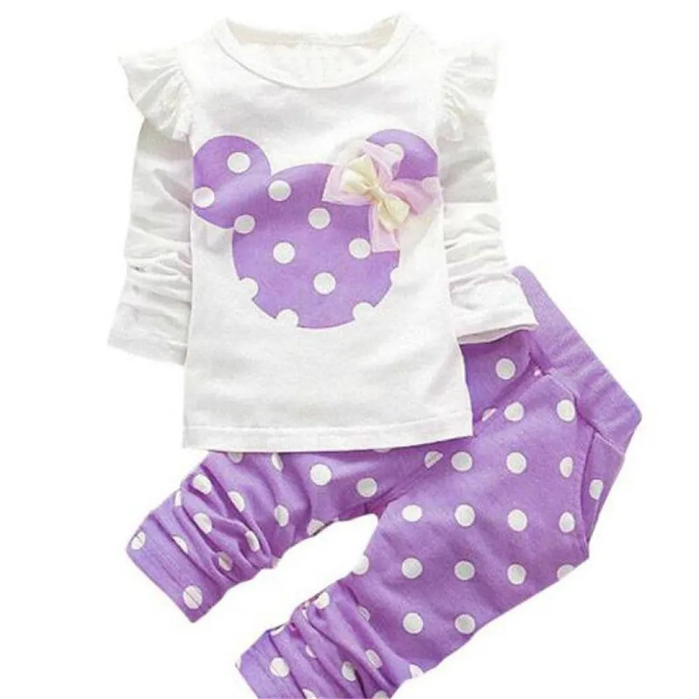 Комплект из двух предметов для девочек, с мультипликационным принтом Микки Мауса, брюки из модала с длинным рукавом в горошек, Disney