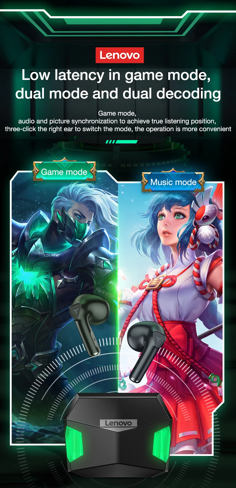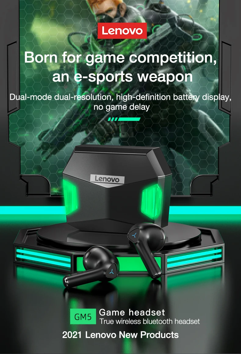 Игровые Bluetooth наушники Lenovo GM5 TWS, профессиональные беспроводные наушники с низкой задержкой, геймерские наушники для iPhone 13, Xiaomi