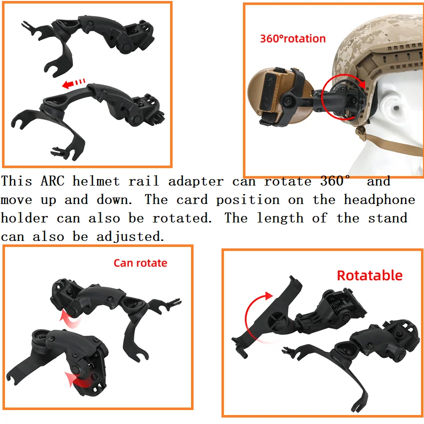 Рельсовый адаптер используется для полный спектр быстрых шлемов, шлемов ACH, шлемов michи других шлемов с дуговыми направляющими сбоку.Этот адаптер для дуга шлема может вращаться на 360 ° и перемещаться вверх и вниз. Положение карты кронштейна на гарнитуре также можно поворачивать. Длину подставки также можно регулировать.Этот кронштейн Устанавливается под боковой дугой шлема. Вы можете зарезервировать место для верхней части шлема для установки тактического фонарика или камеры. Он также может обеспечить лучшую стабильность шлема и баланс оборудования для установки переднего экрана (например, оборудования ночного видения).С помощью этого продукта на шлем устанавливается тактический гарнитура comtac. Когда гарнитура не используется, ее можно поворачивать к задней части шлема, что упрощает способ хранения и создает сдержанный внешний вид.