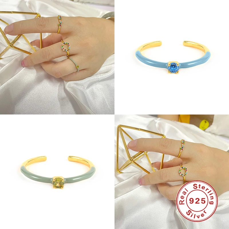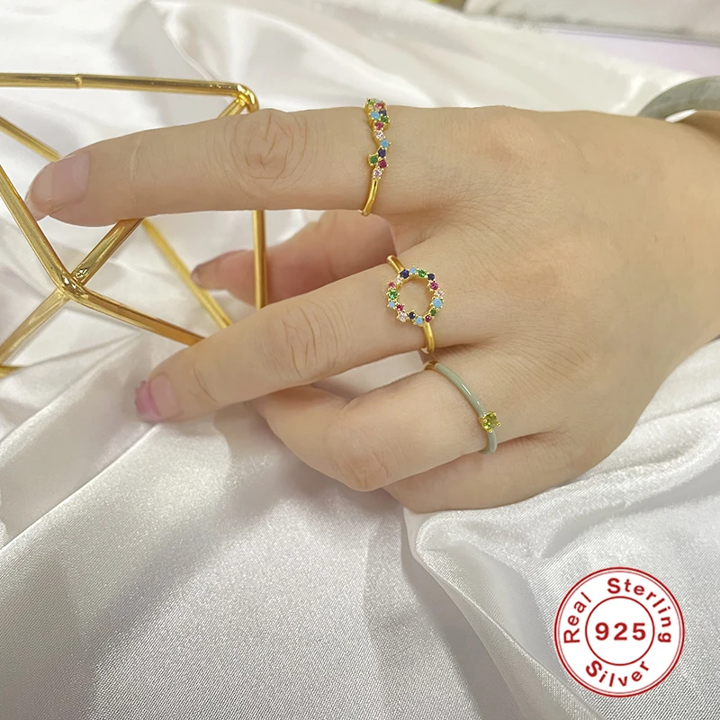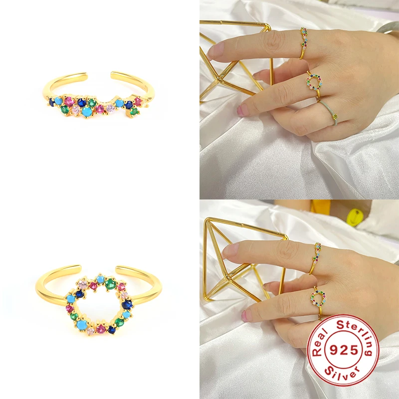 Anillo plata, Открытое кольцо из стерлингового серебра 925 пробы, красочные циркониевые свадебные кольца для влюбленных пар, обручальные ювелирные изделия, аксессуары
