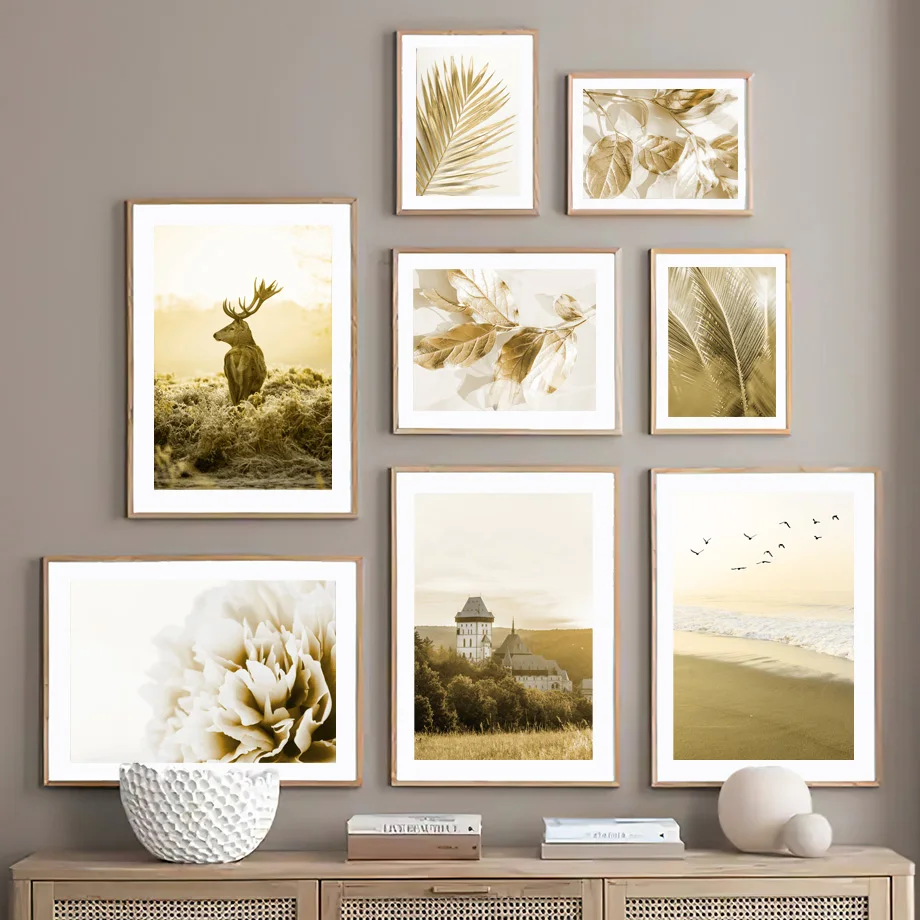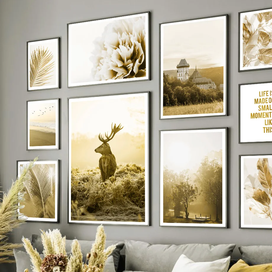 Северный постер Золотой эвкалипт Пальмовые Листья олень Цветок пляжная птица настенная Художественная печать холст Картина Декор картинки для гостиной