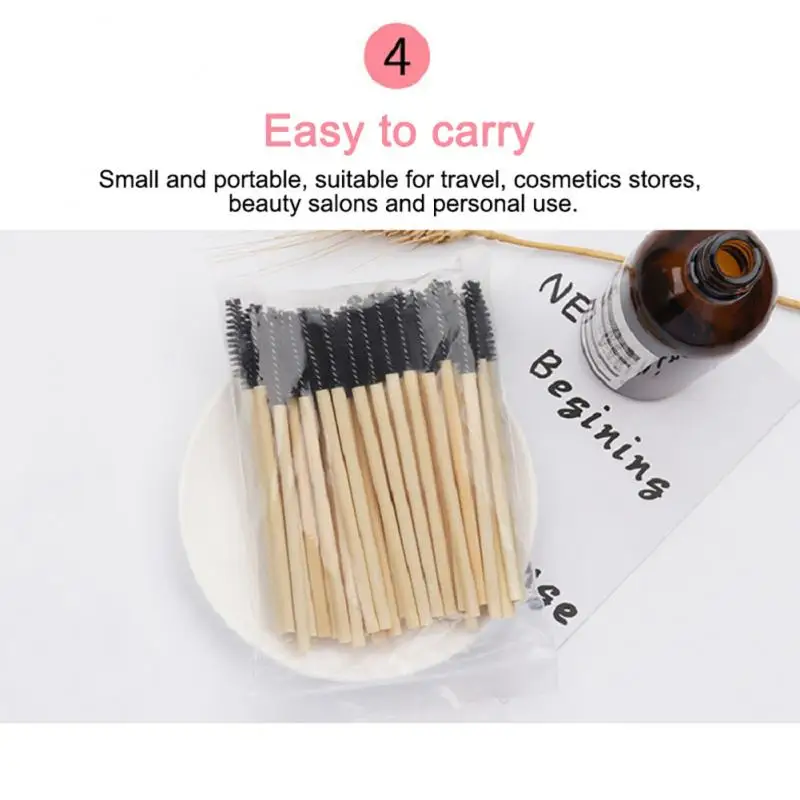 50 шт. Одноразовая кисть для ресниц бамбуковая ручка нейлоновая щет...