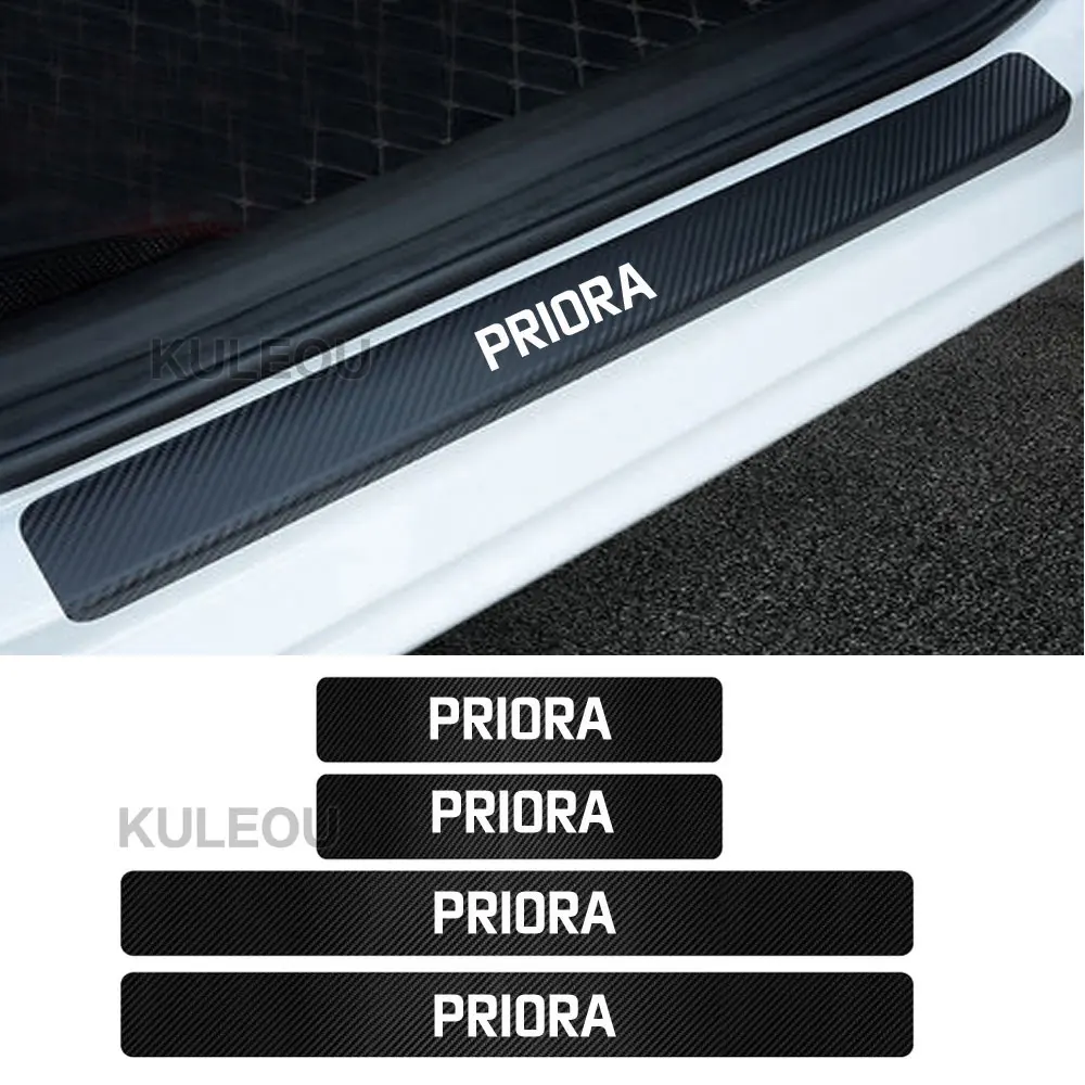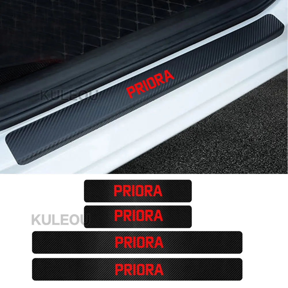 4 шт. для LADA PRIORA автомобильные накладки на порог, накладные наклейки, пороговые протекторы, углеродные волоконные наклейки