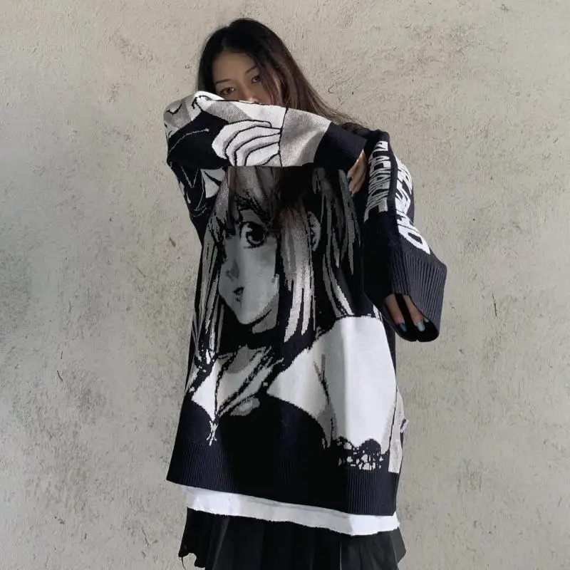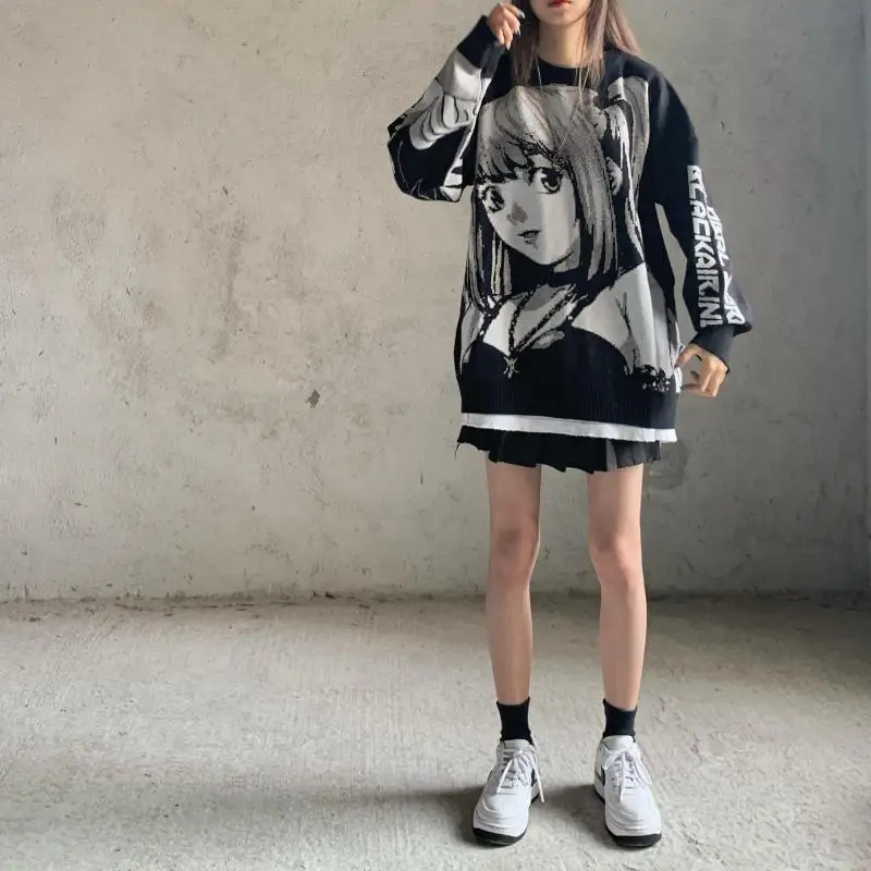 Трикотажный свободный свитер в японском стиле с аниме для девочек, ...