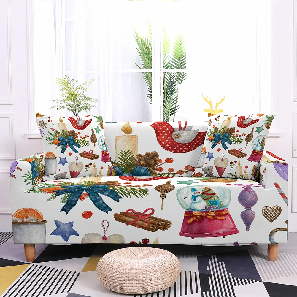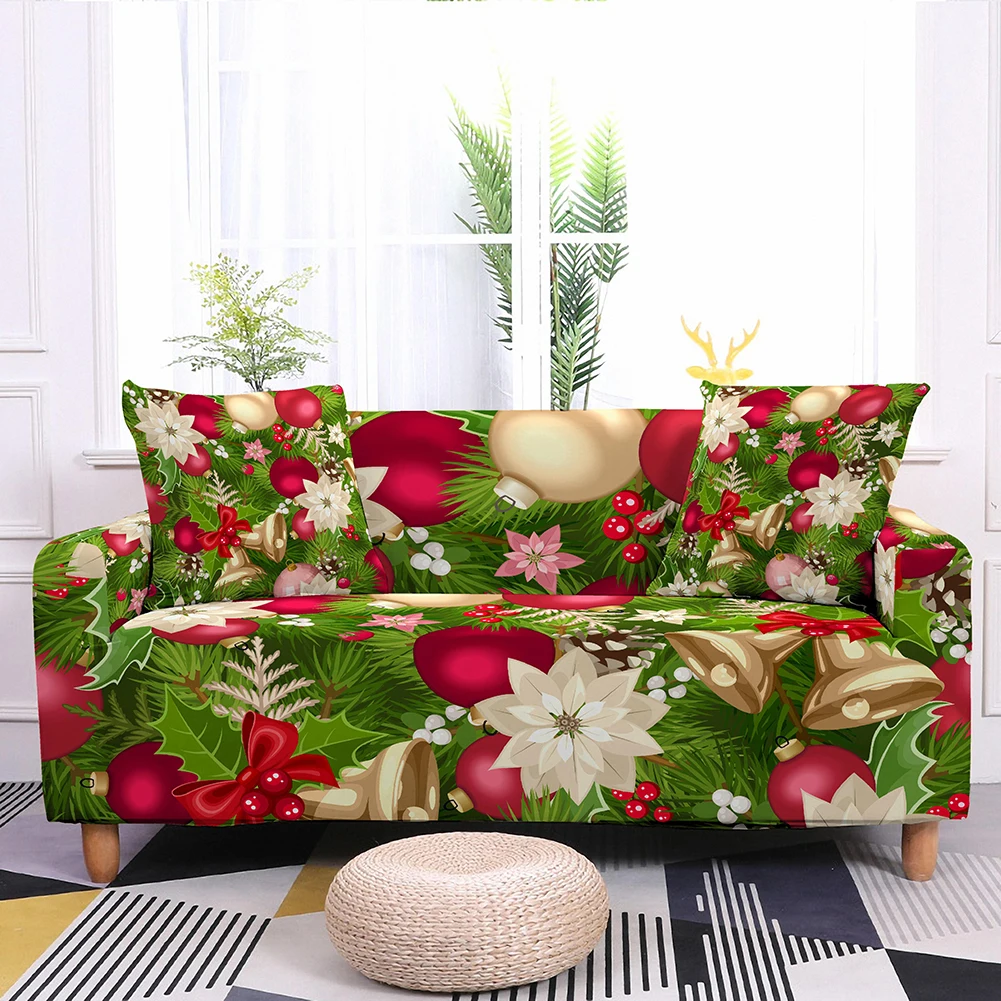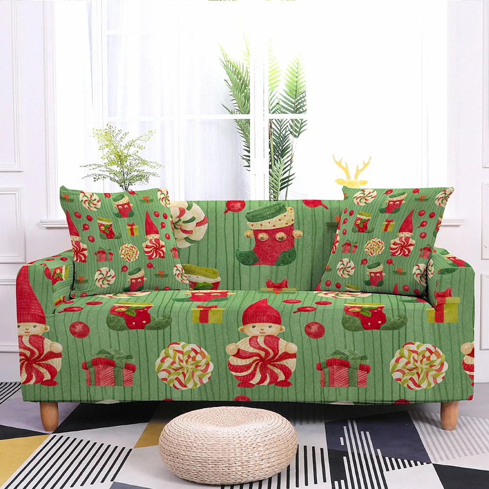Рождественский чехол для дивана, эластичный чехол для дивана в гостиную, секционный угловой чехол для дивана с Санта-Клаусом, эластичный чехол для дивана на 1-4 места