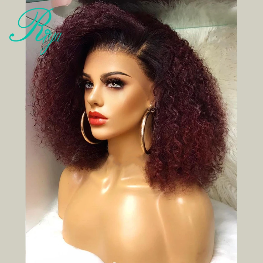 Парики-невидимки из натуральных волос Jerry курчавые, короткие, Боб, пикси, 4X, 4, на сетке, для чернокожих женщин, 99J, красный, бордовый, цвет Омбре, парик