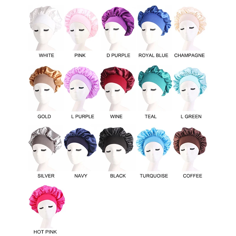 Широкая эластичная Женская атласная шапка, ночные шляпы для волос, однотонная шапка для душа для сна Royon для женщин, ночная шапка, женская накидка на голову