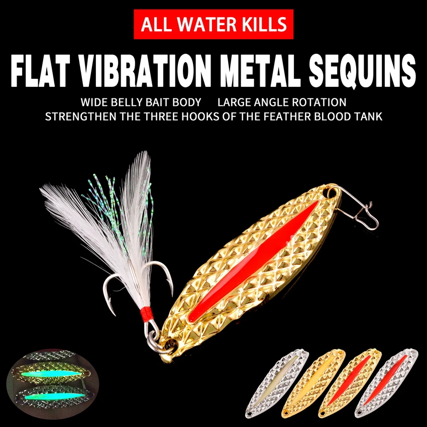 Металлическая блесна, рыболовная приманка, Светящиеся жесткие приманки 57101520 г, блестки, шумовая блестящая приманка с пером, тройной крючок, Рыболовный инструмент
