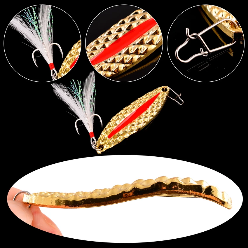 Тип приманки: светящаяся металлическая блеснаВес: 5g/7 г/10 г/1 5g/20 гДлина: 4 см/4,5 см/5 см/5,7 см/6,1 смМатериал: цинковый сплавЦвет: Золотой/Серебряный Количество упаковки:1 * рыболовные приманки