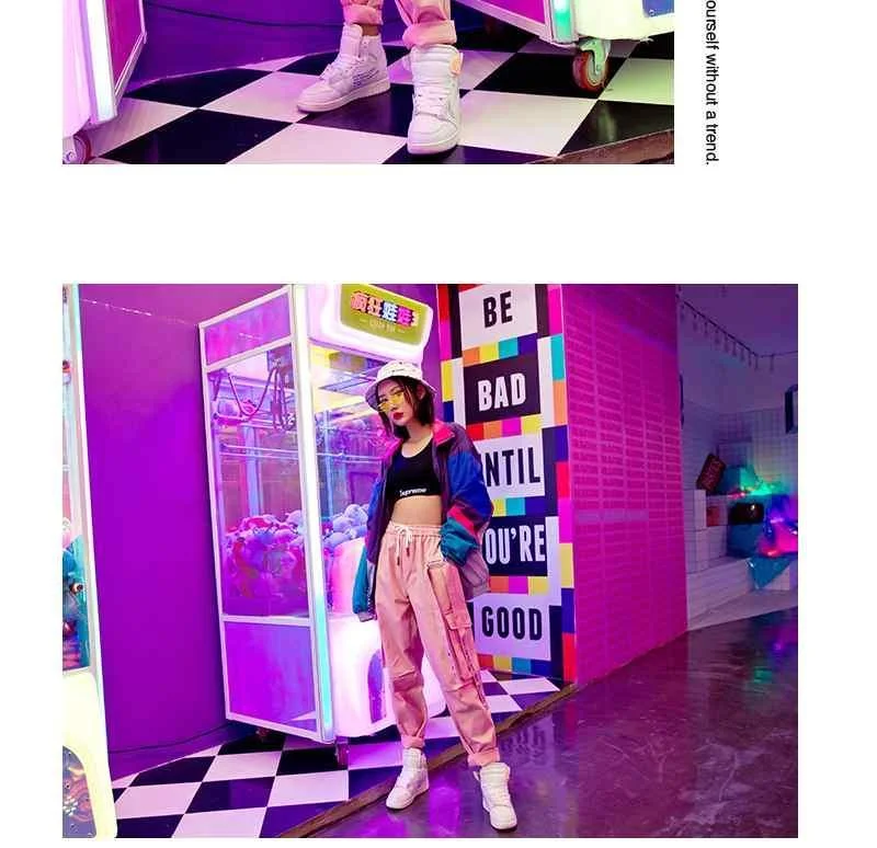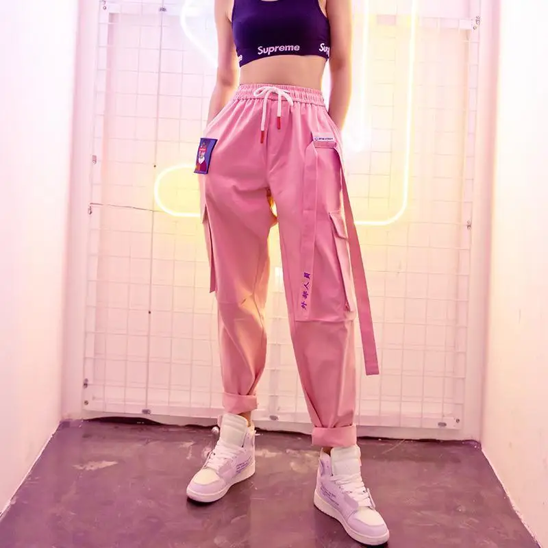 Розовые уличные штаны HOUZHOU женские штаны карго Y2k хип-хоп Harajuku Techwear с высокой талией, женские штаны для бега, корейские спортивные штаны