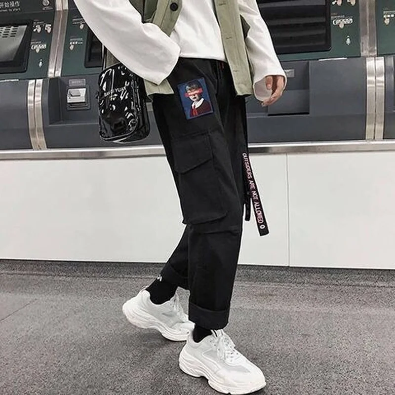 Брюки женские с завышенной талией в стиле Харадзюку, штаны унисекс ...