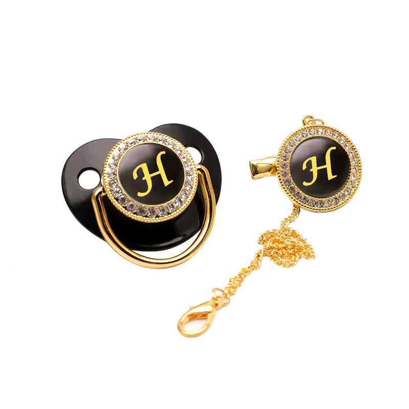 Роскошная Черная шикарная детская пустышка с буквенным алфавитом и надписью M, детская пустышка с золотыми буквами, уникальный 26 имени, подарок для детского душа