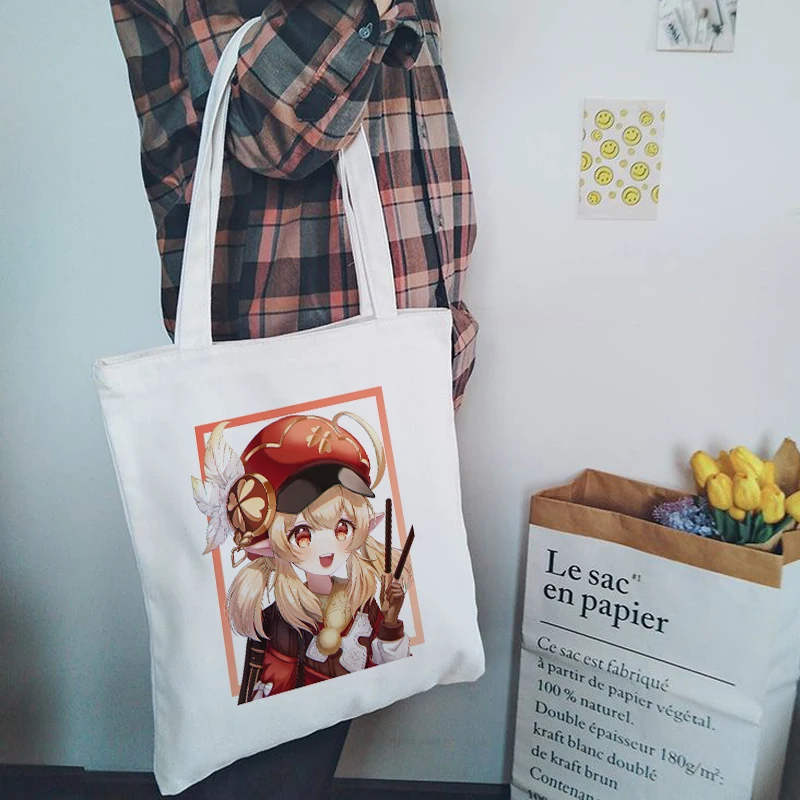 Холщовая Сумка шоппер Genshin Game Kawaii аниме сумки для шопинга с...