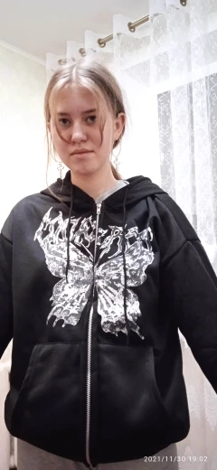 толстовка класс,пришла ровно за 2 недели. бабочка и надпись наклейка, если хотите чтобы была норм берите xxl.