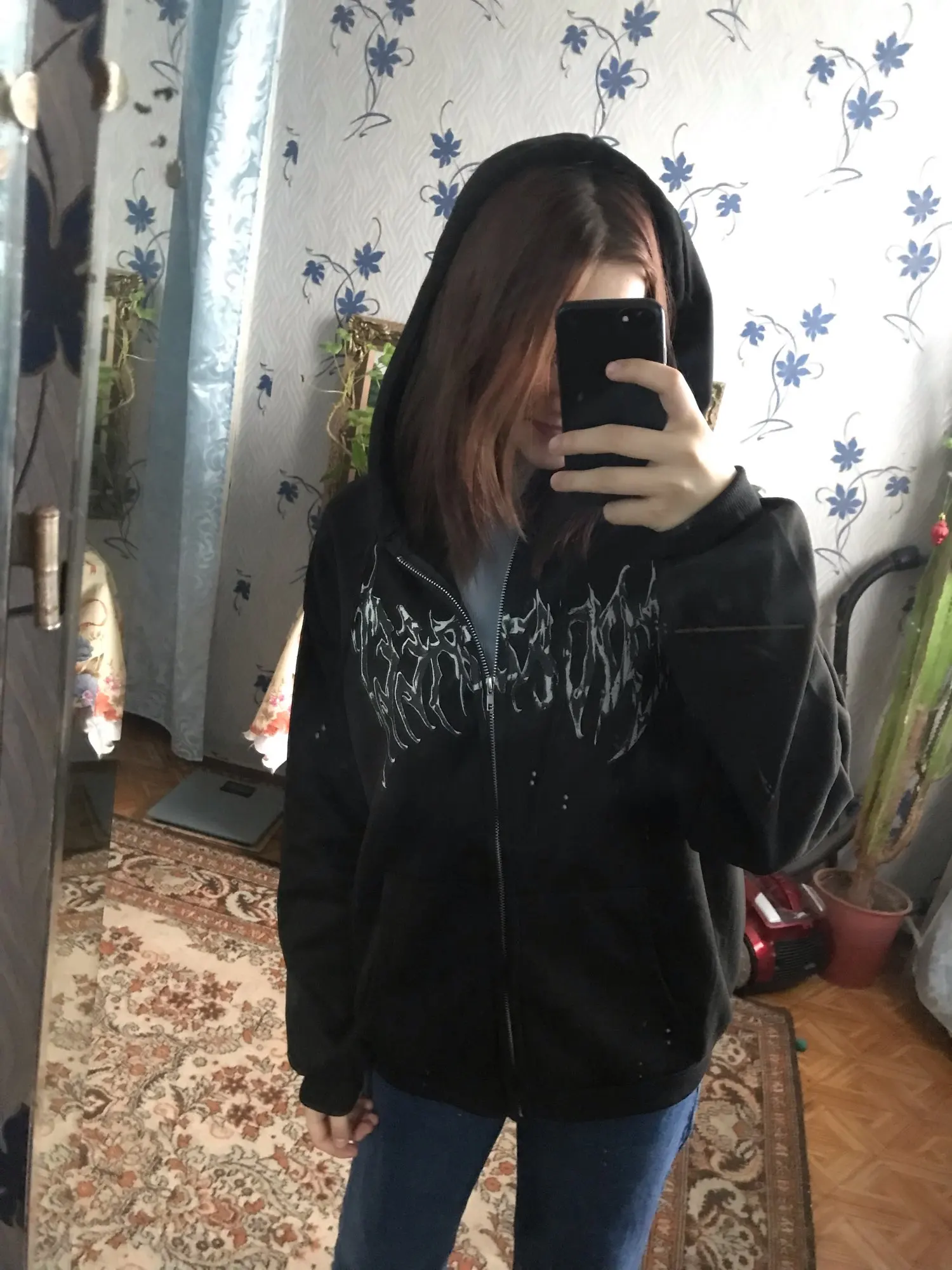 Женская толстовка с капюшоном Y2k, черная Осенняя толстовка с принтом бабочки в стиле хип-хоп, Женская куртка в стиле Харадзюку на молнии в готическом стиле панк