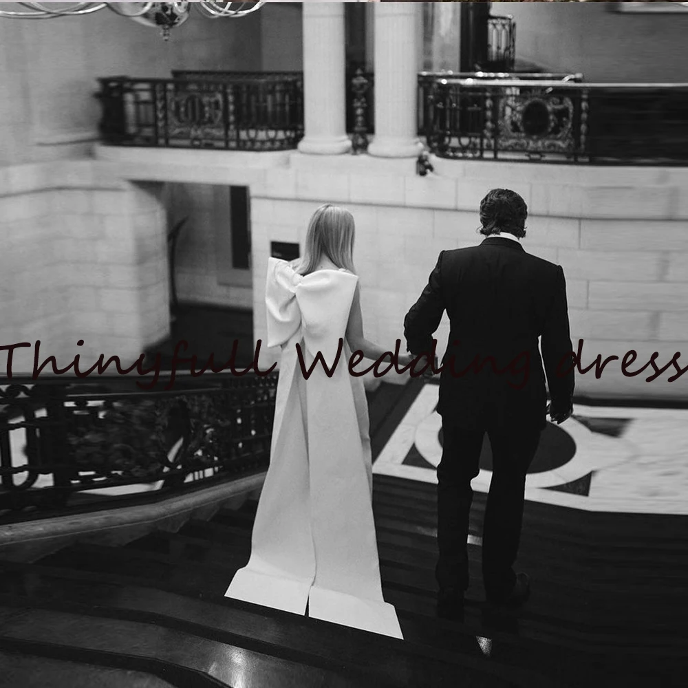 Свадебное платье-трапеция, с большим бантом, без рукавов, с круглым вырезом