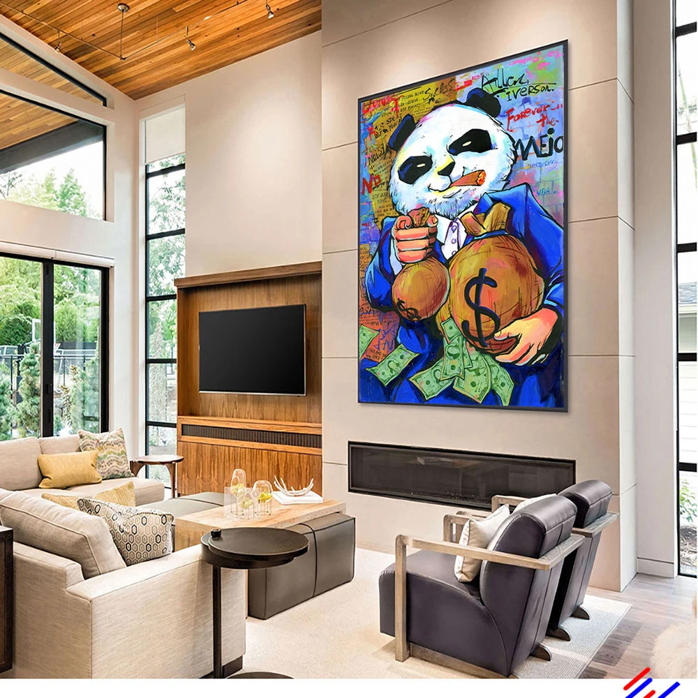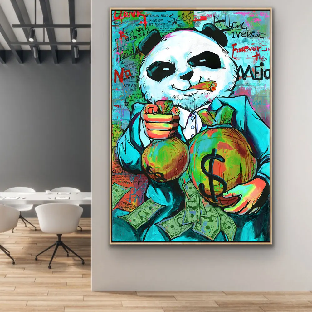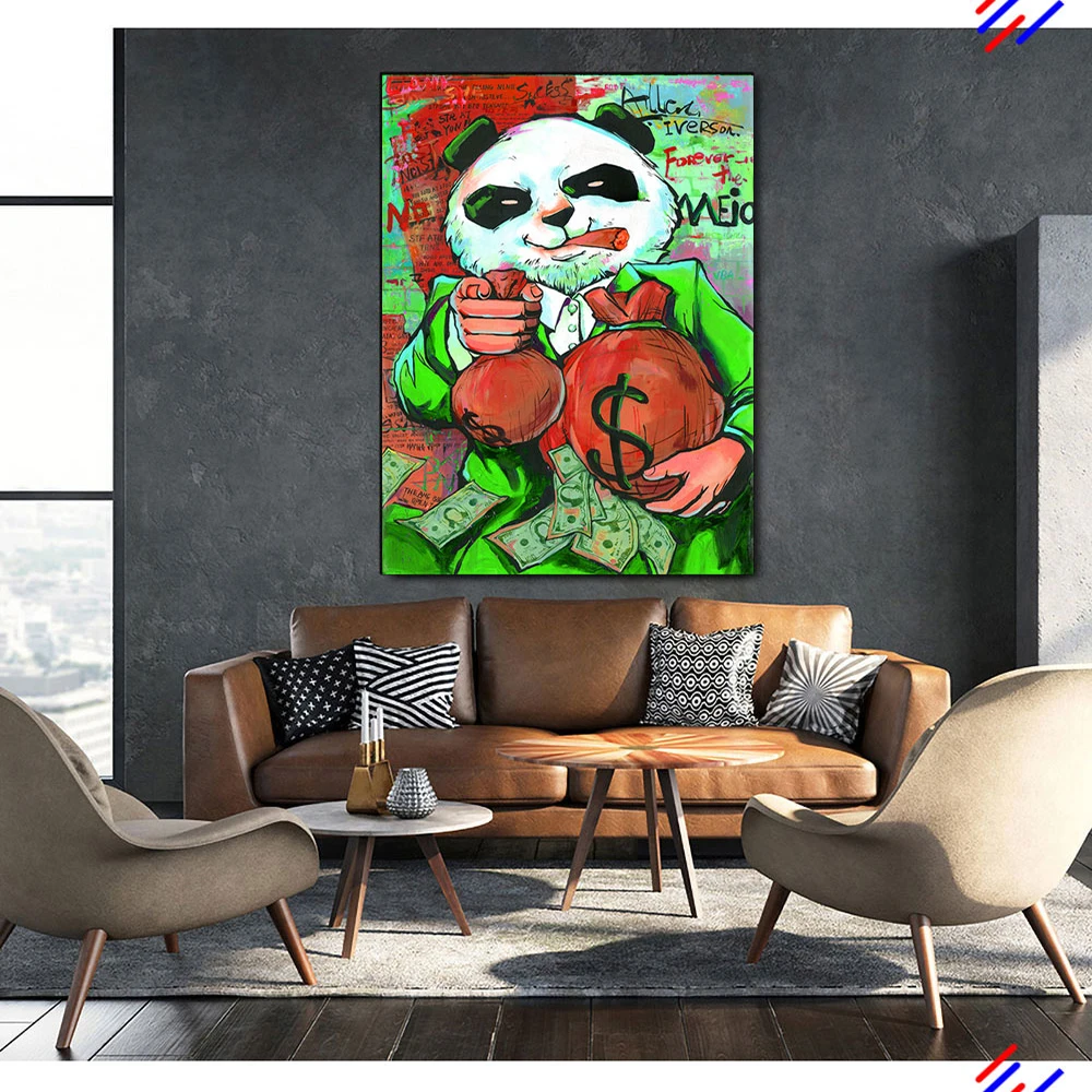 Фиолетовая зеленая панда, забавное лицо курительная картина, монетница, холщовая картина, мотивационный Уличный настенный плакат, украшение для комнаты и дома