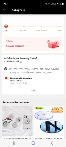 Я люблю тебя советует покинуть. Я провел контролирует продавец имеет ждали последнего дня для говорили отправить свой заказ. О накладной, который необходим для отслеживания груза c'était только с маркировкой полученную информацию, а также через несколько дней я вижу, что отправка была отменить. Продавец не отправила заказ мы верим, что все же. Окончательный возврат не отвечает интересам.