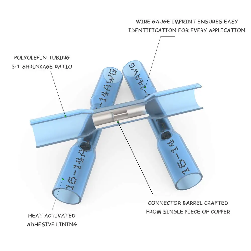 Термоусадочные обжимные клеммы, 100 шт., 22-16 AWG, водонепроницаем...
