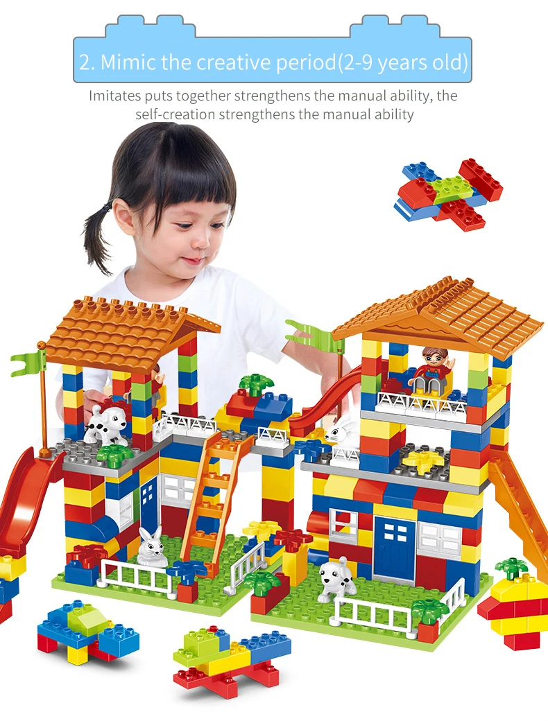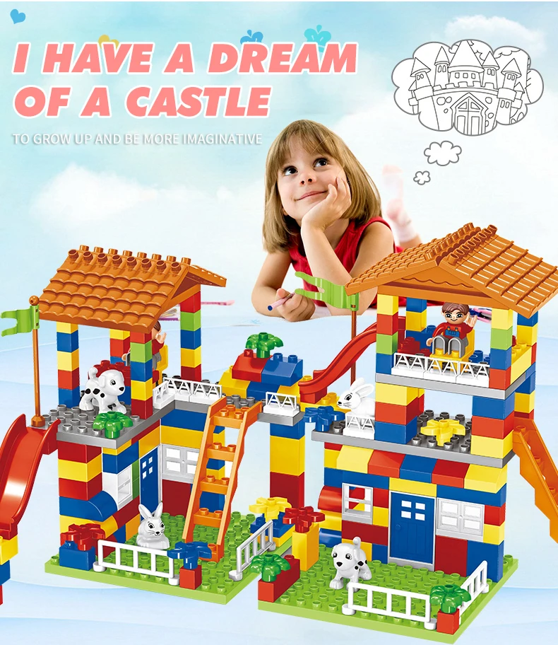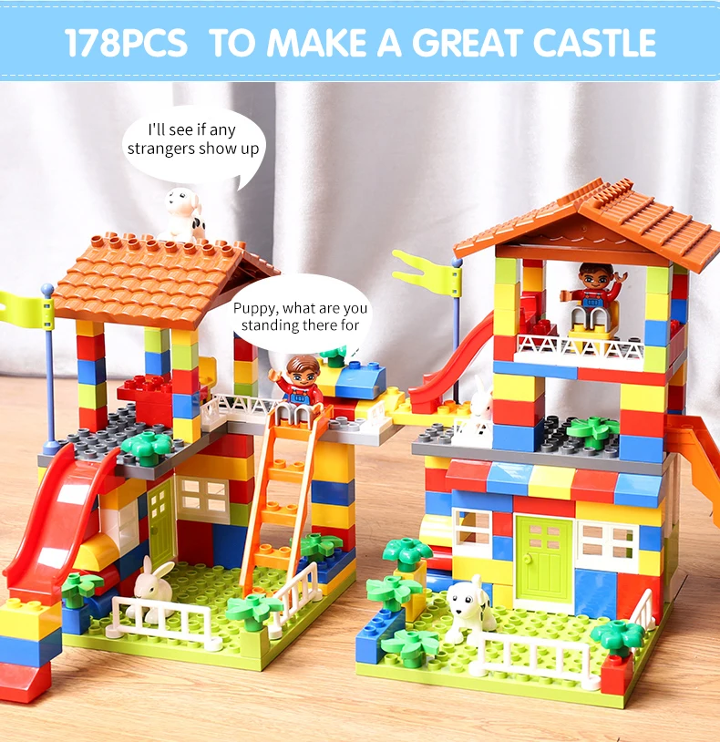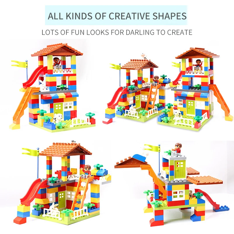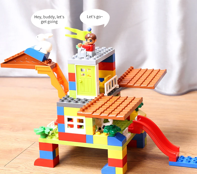 Большие размеры, скользящие блоки, совместимые с LegoINGlys, Duploed, городской дом, крыша, большие частицы, строительные блоки, замок, кирпич, игрушки для детей