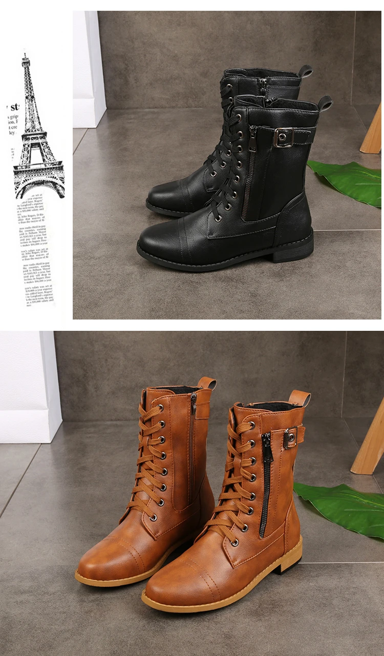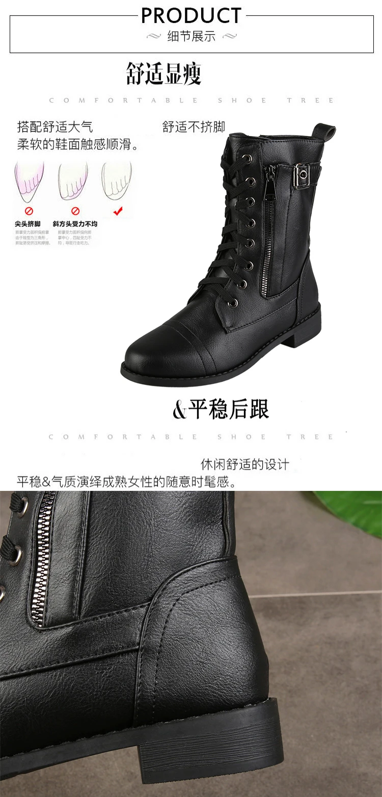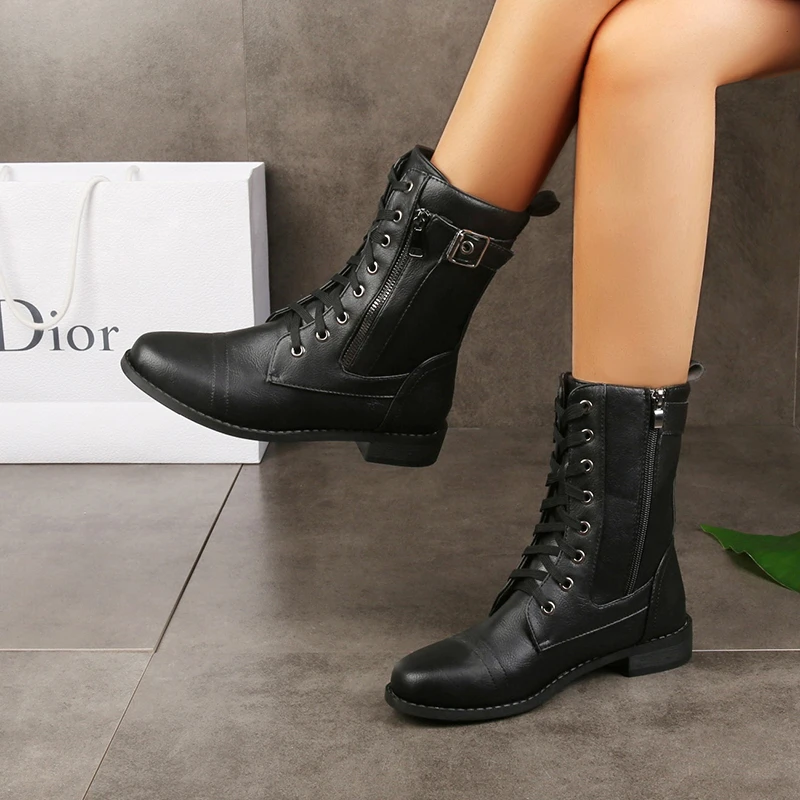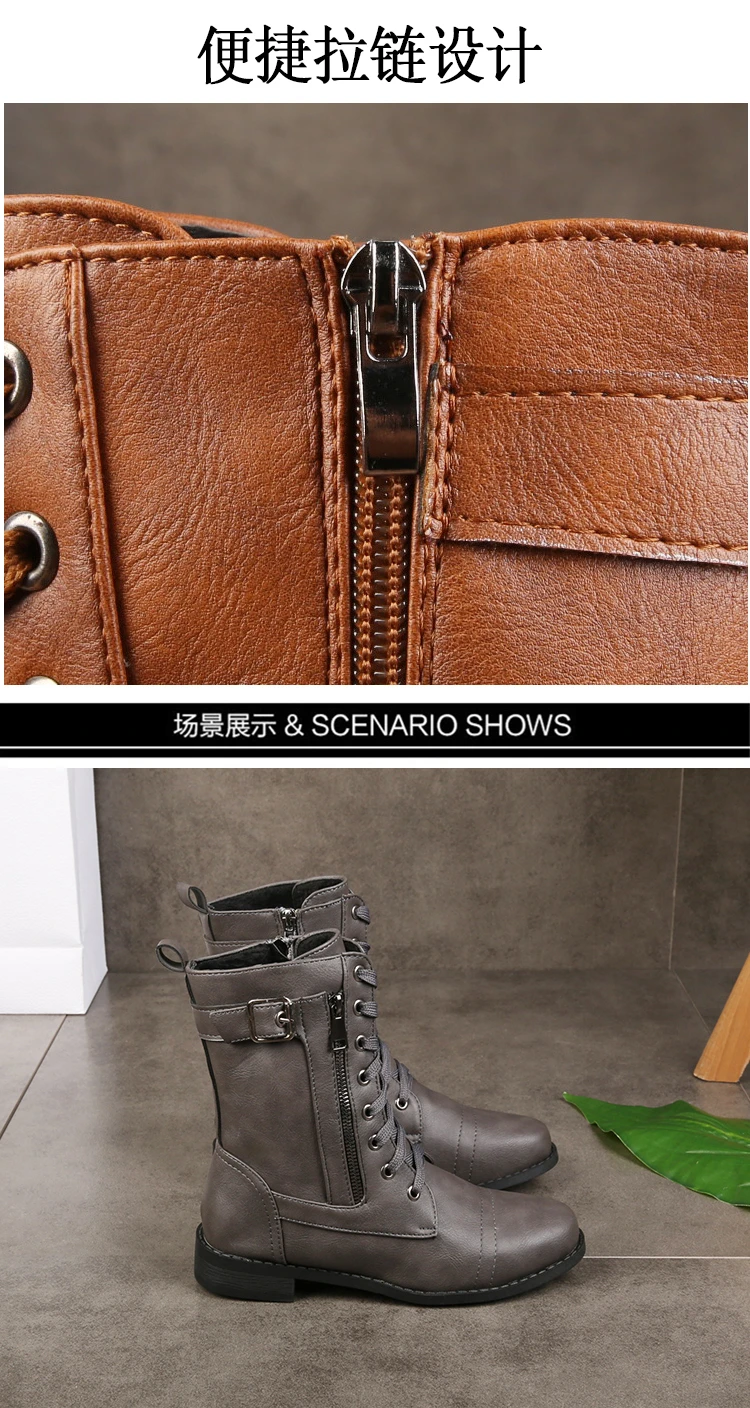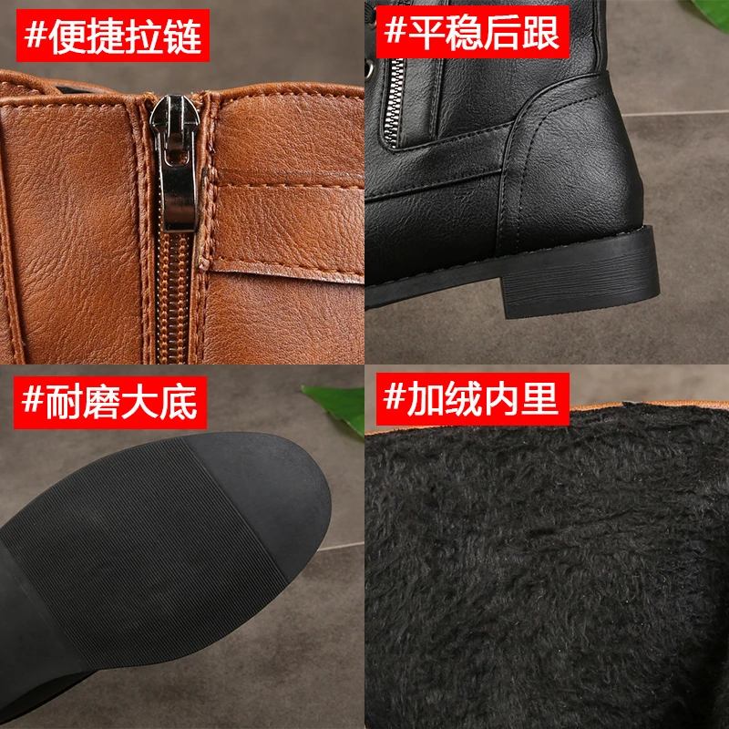 Женские повседневные высокие ботинки на низком каблуке, теплые зимние мотоциклетные ботинки на молнии с круглым носком, 2021