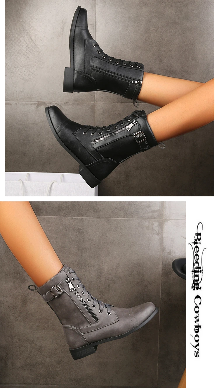 Женские мотоциклетные ботинки, полусапожки в стиле ретро, на шнуров...