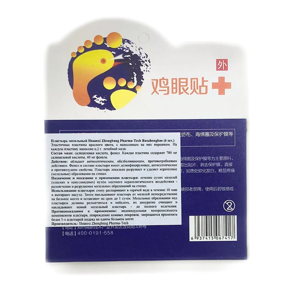 Показания: лечение сухих мозолей (плоских и конусовидных) путём местного кератолитического воздействия.