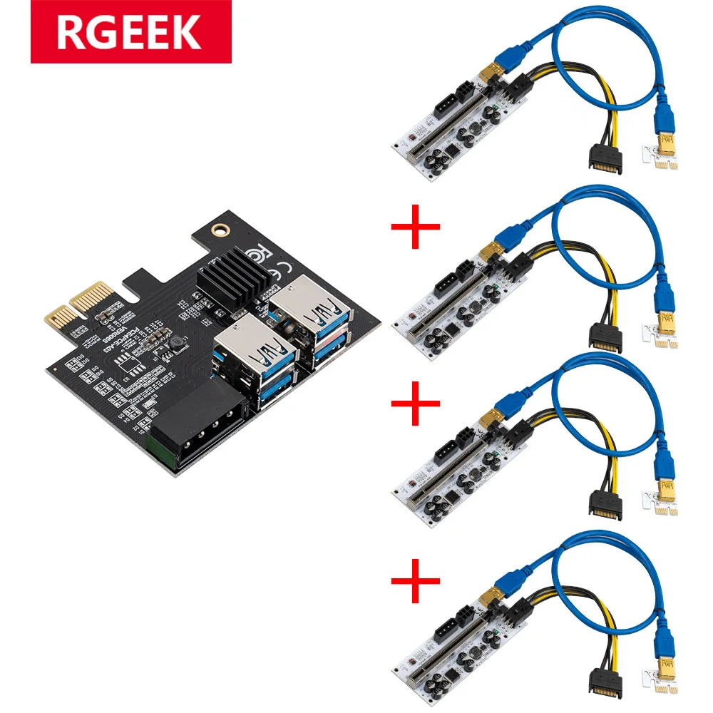 4 шт. PCI-E Express райзер для видеокарты, 1x до 16x, Райзер 010S, адаптер карты PCIE 1 на 4, слот-удлинитель, 4 порта, карта-усилитель для майнинга биткоинов BTC