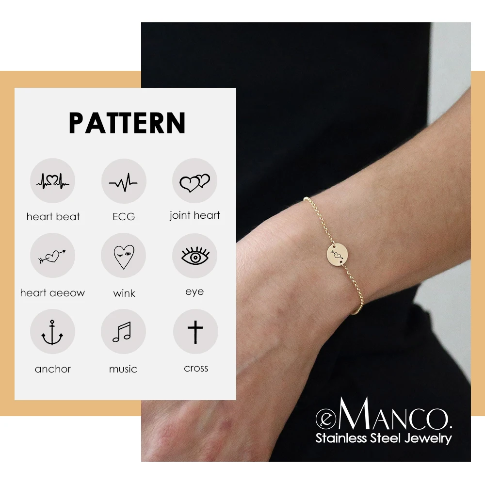 Браслеты eManco с изображением короны, монеты, манжеты с изображением сердца, венка, браслет с уникальным дизайном, цепочка из нержавеющей стали 316L, подарки для женщин, ювелирные изделия