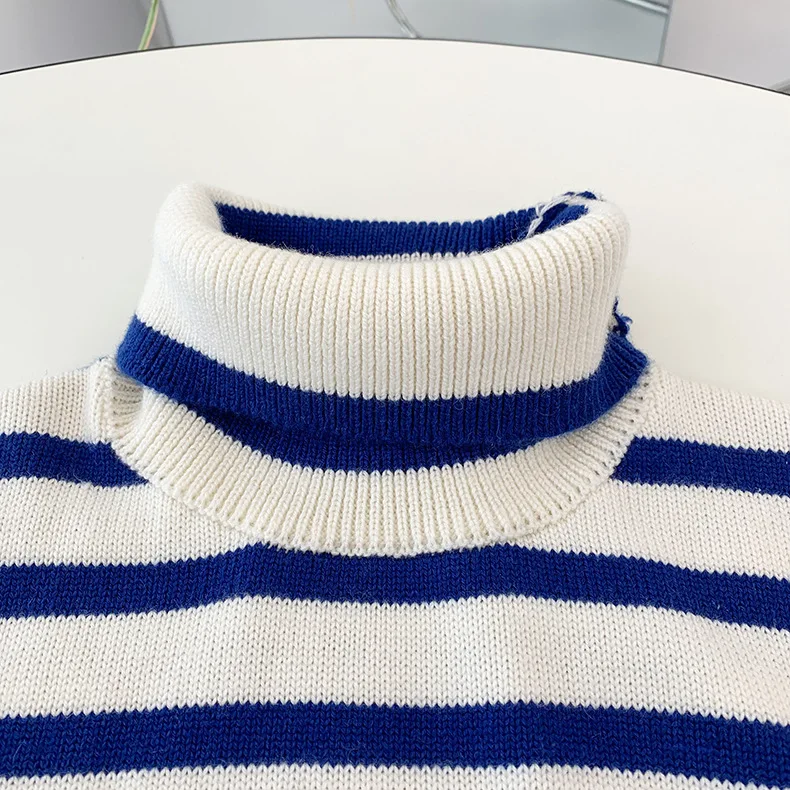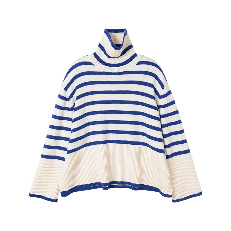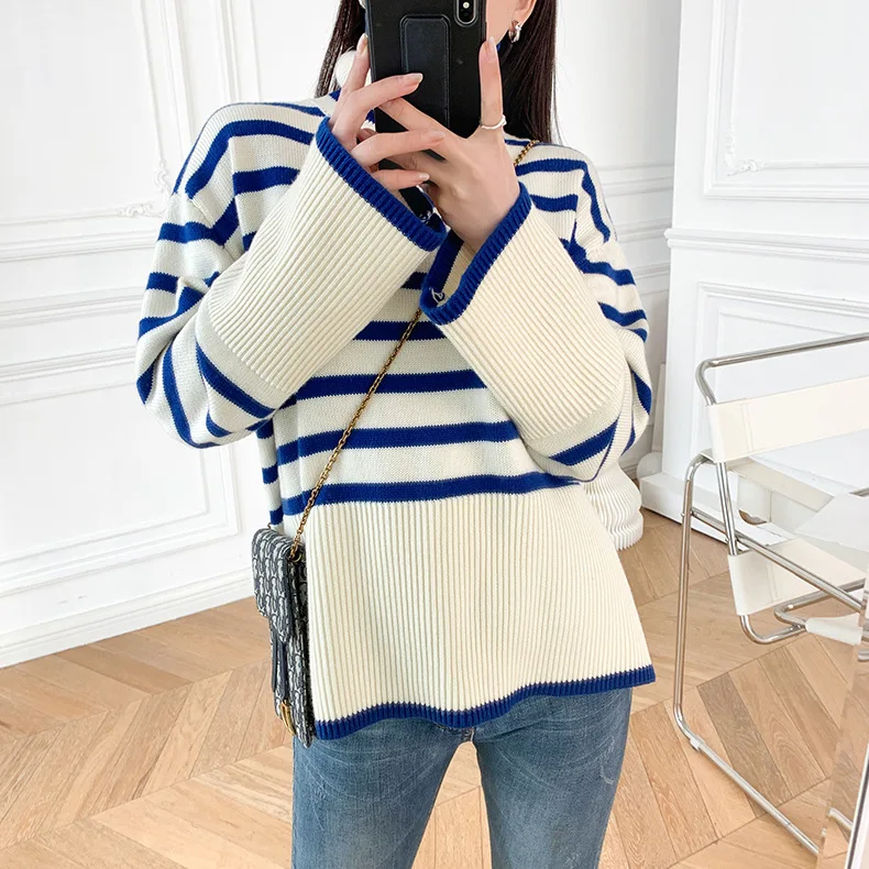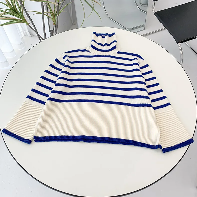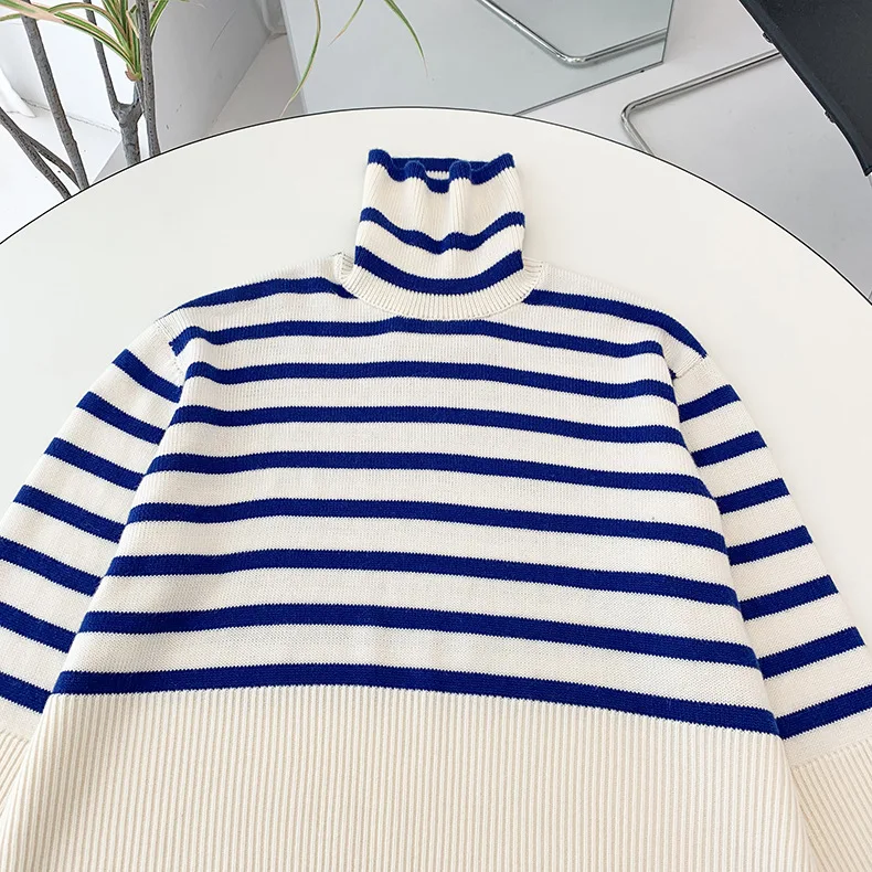 Женский свитер-водолазка в полоску, Свободный пуловер с Боковым Разрезом и длинным рукавом, новинка сезона осень-зима 2021, женский джемпер 2 цветов