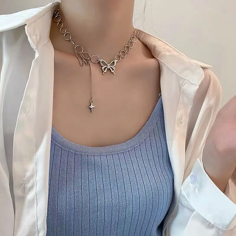 Ожерелье-бабочка из нержавеющей стали, женское индивидуальное ожере...