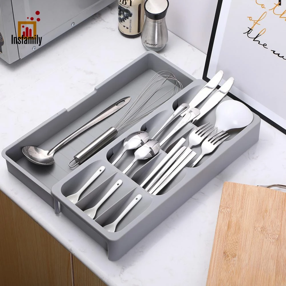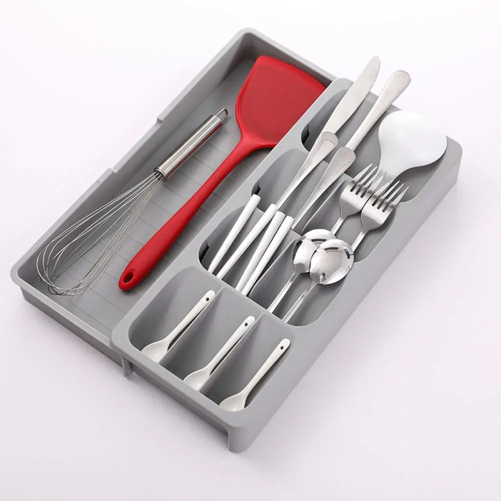 Кухонный лоток для хранения столовых приборов, многофункциональный держатель для ножей и вилок, кухонный органайзер, телескопическая коробка с несколькими ячейками
