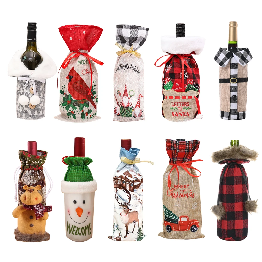 Рождественские Чехлы для винных бутылок, праздничные Чехлы для буты...