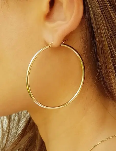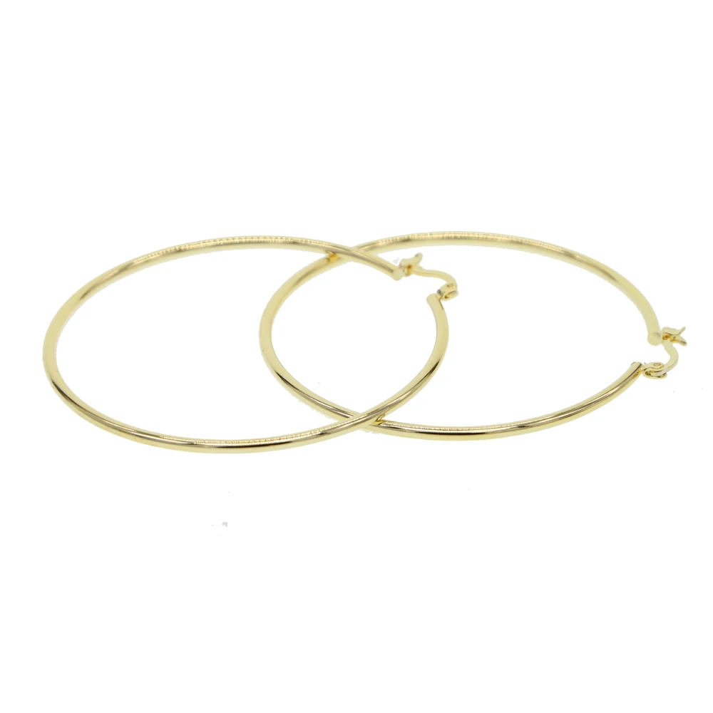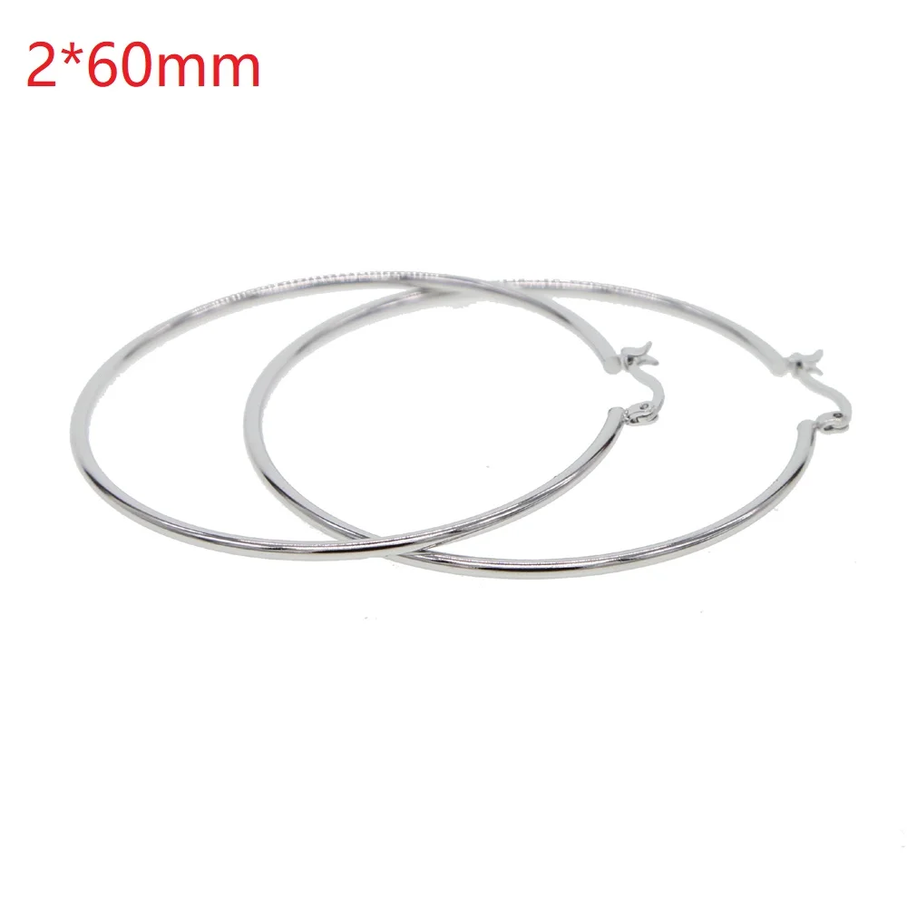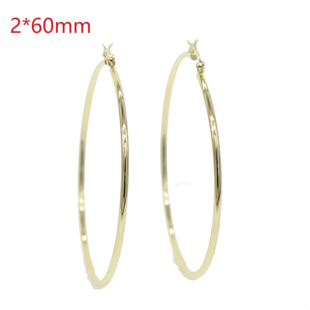 2 мм Толщина 60 мм большие серьги кольца светильник вес полый внутренний золотого цвета Блестящий Металлический Трубчатый обруч для женщинОбруч из латуниБулавка из серебра 925 пробы