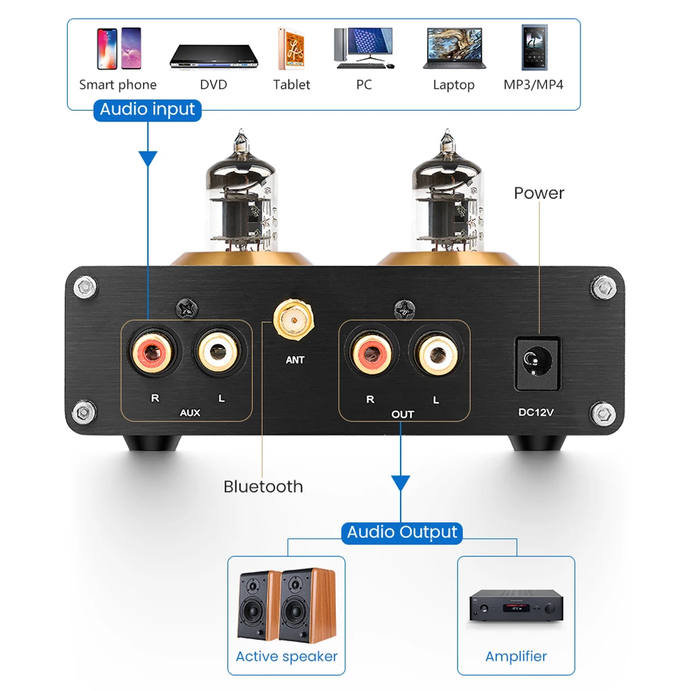 ПродуктЯвляется преусилителем. Это не аудио усилитель.Он должен быть подключен к активному динамику и заднему усилителю.