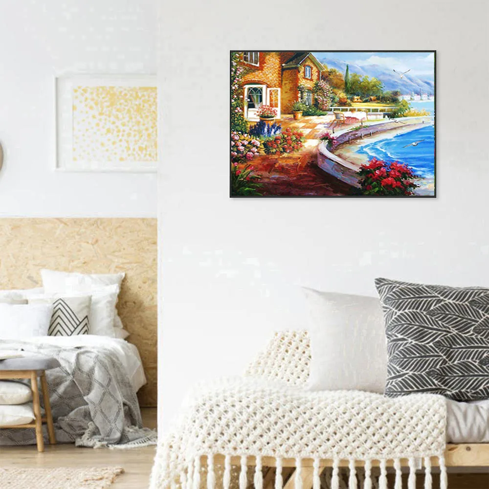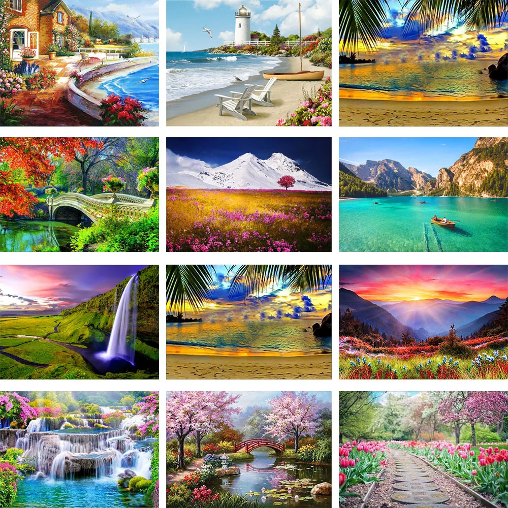 Алмазная живопись 5D сделай сам, мозаика с вышивкой в виде водопада, с круглым пейзажем, комната с видом на море, полное искусство, домашний декор