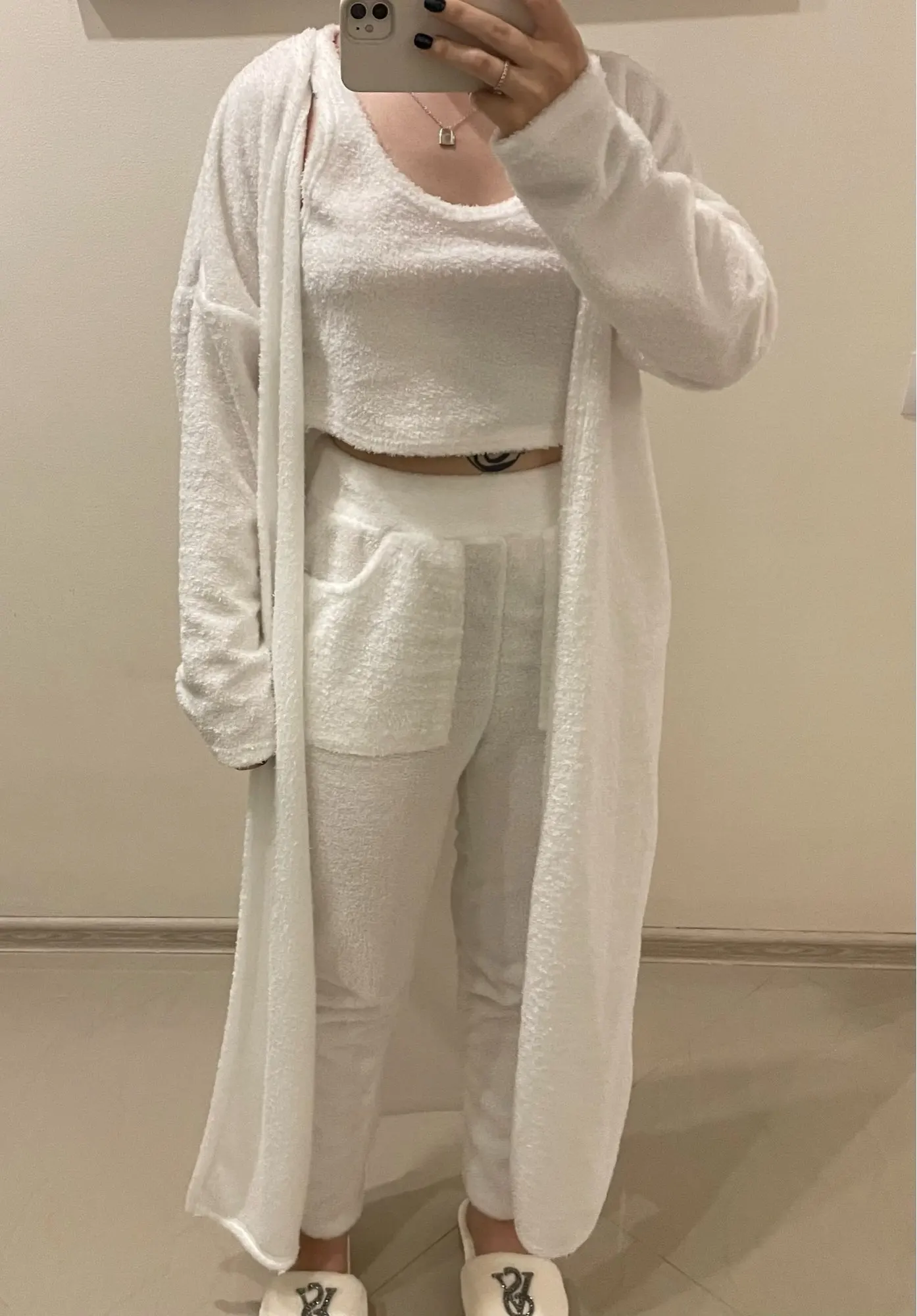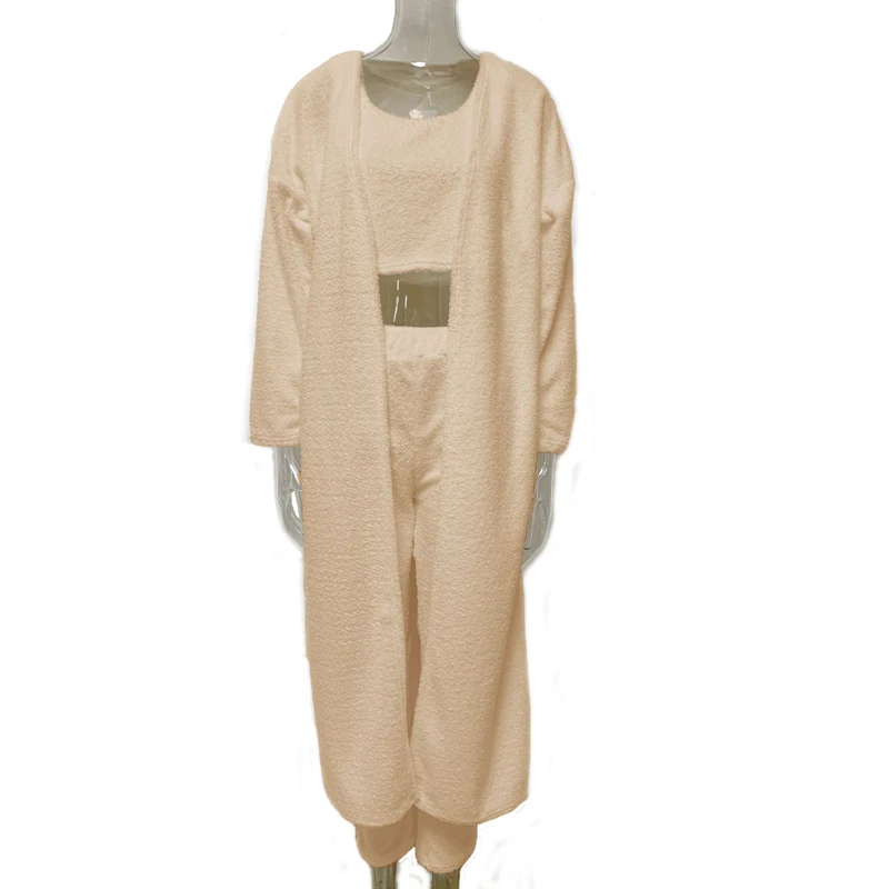 Женский меховой однотонный комплект из 3 предметов, мягкий свитер, пальто, жилет, топы, пушистые брюки, леггинсы, повседневная сексуальная плюшевая осенняя одежда, домашняя одежда, 2021