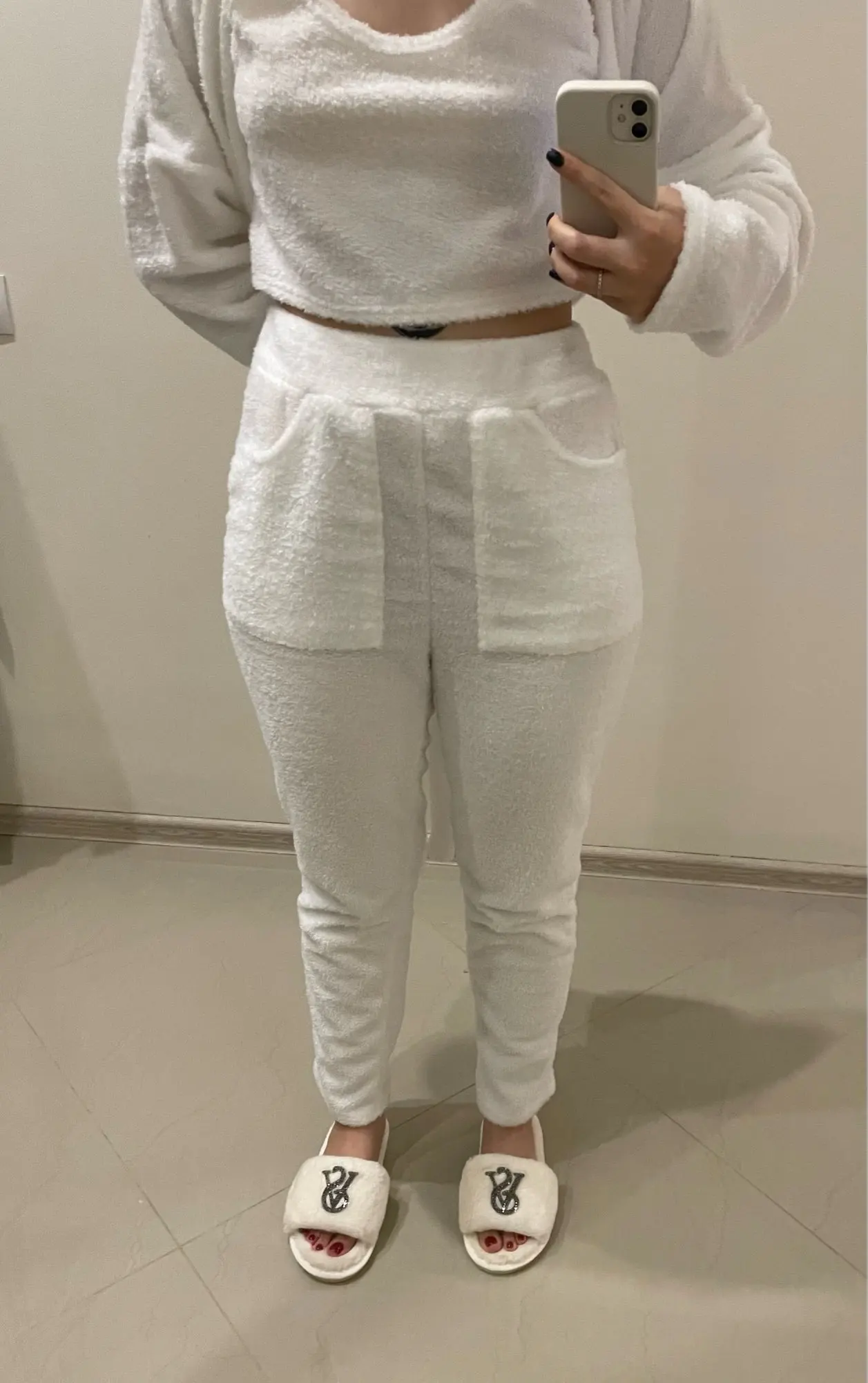 Если честно, это немного не то, что я ожидала( Пижама просто нормальная, на фото выглядела лучше. Если б не было этих ужасных карманов на штанах, которые жутко полнят, то возможно поставила бы 5 звёзд. Зачем эти карманы вообще нужны… Может я не обратила внимание на какое то фото, но думала при заказе, что их не будет. В общем, карманы тут главное разочарование. А так в принципе нормально. Ткань полиэстер очень мягкая и приятная, но не знаю останется ли такой после стирки. Пришло быстро