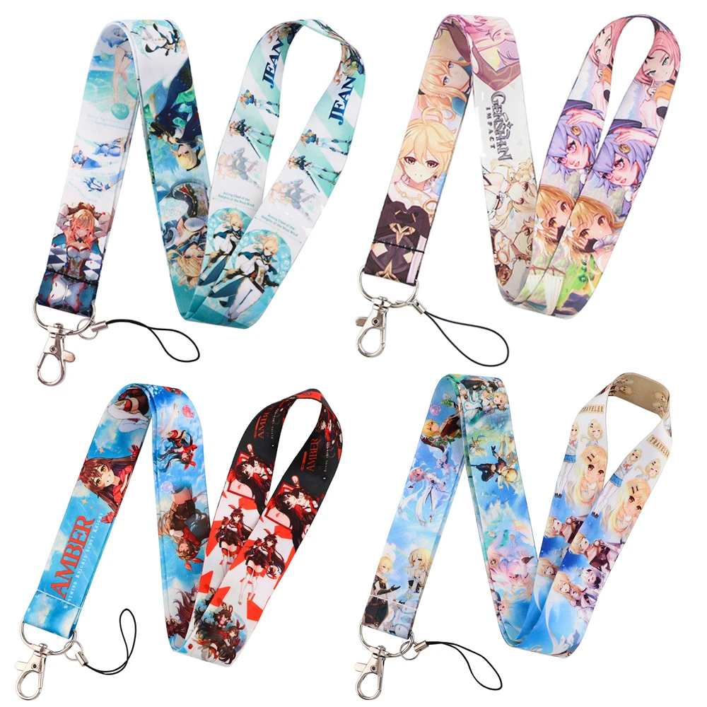 PF1330 Genshin ударный шейный ремешок, шнурки, брелок, держатель для ID-карты, подвесной шнурок, Лариат, шнурок для ключей, аксессуары