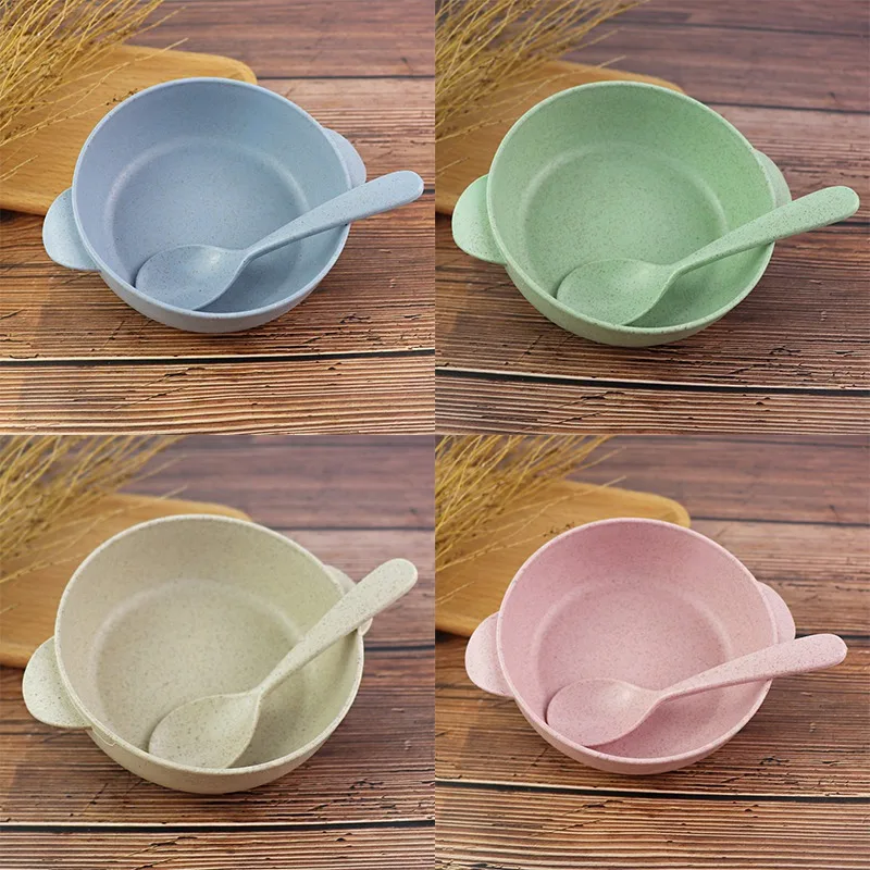 Чаша из пшеничной соломы с защитой от падения, столовая чаша, набор ложек, чаша для риса, контейнер для фруктов, мультяшный лоток для закусок, посуда для завтрака, кухонная посуда