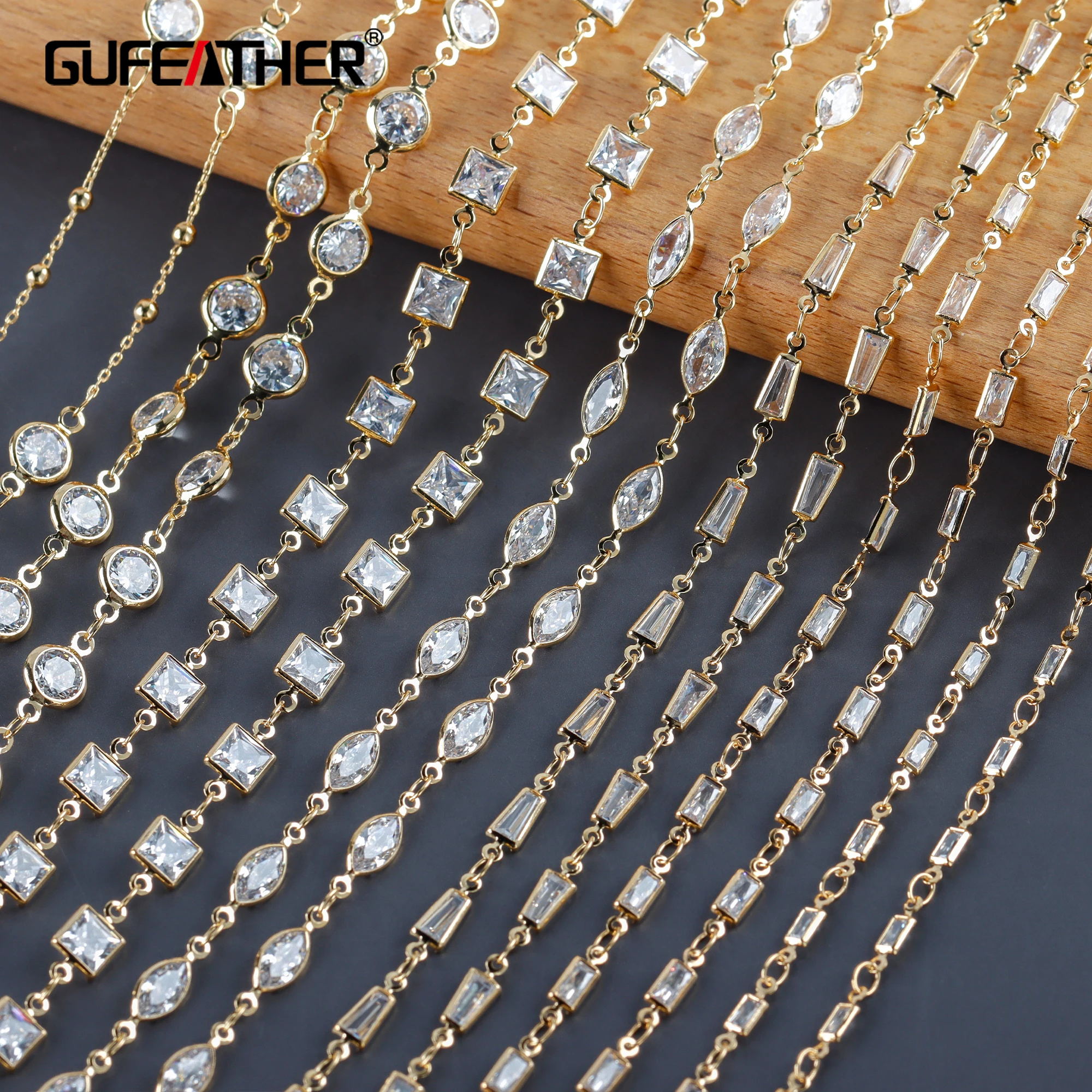 Набор для изготовления ювелирных изделий GUFEATHER, набор из цепочек для самостоятельного изготовления ювелирных изделий из меди, циркона, ожерелья и браслета, 18 карат, без никеля, 1 млот, C209