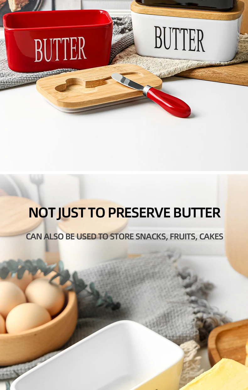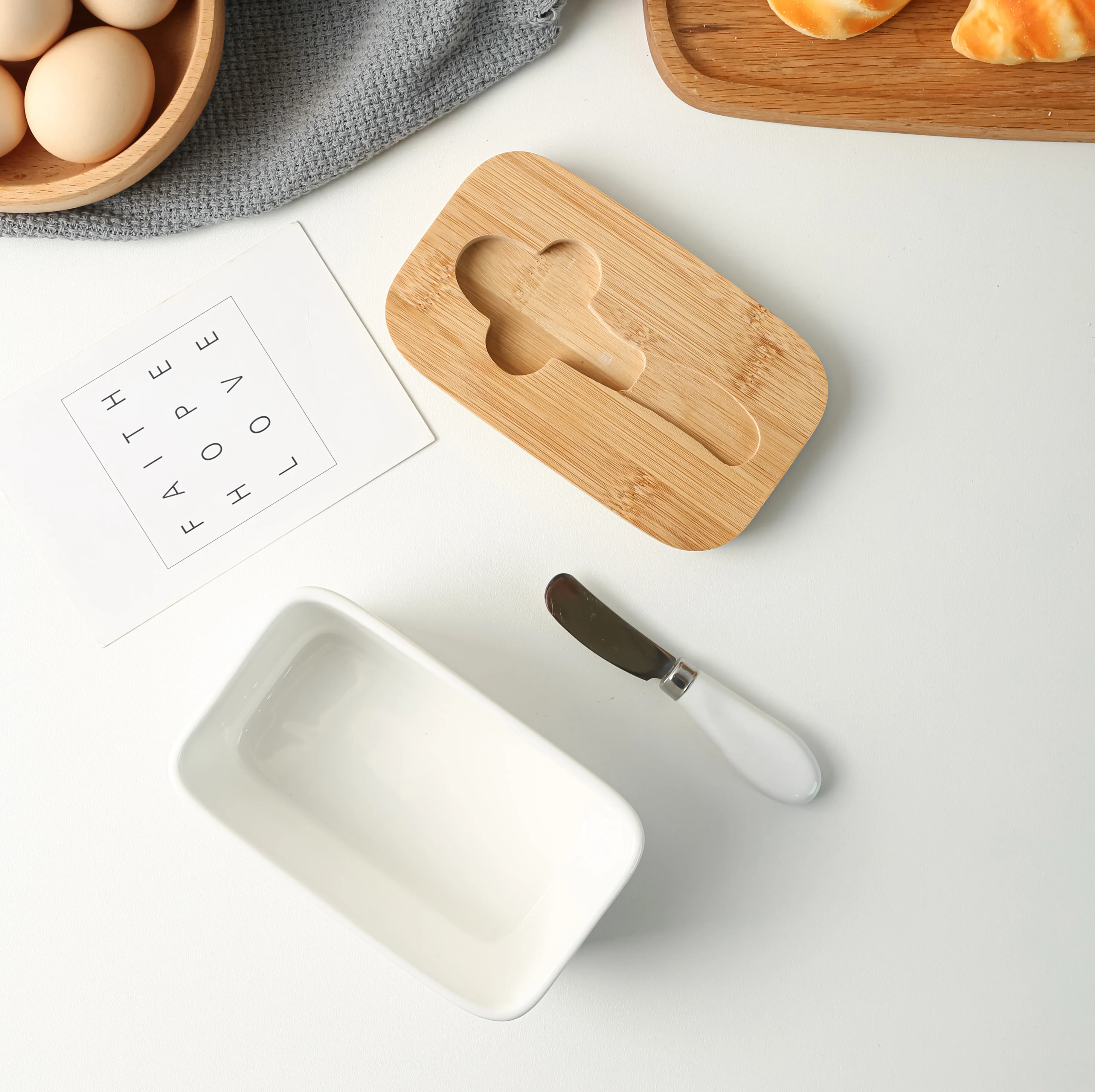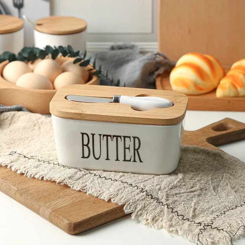 600 мл Коробка для хранения масла большой емкости керамический герметичный контейнер для сыра кухонный с деревянной крышкой Органайзер для ножа и масла