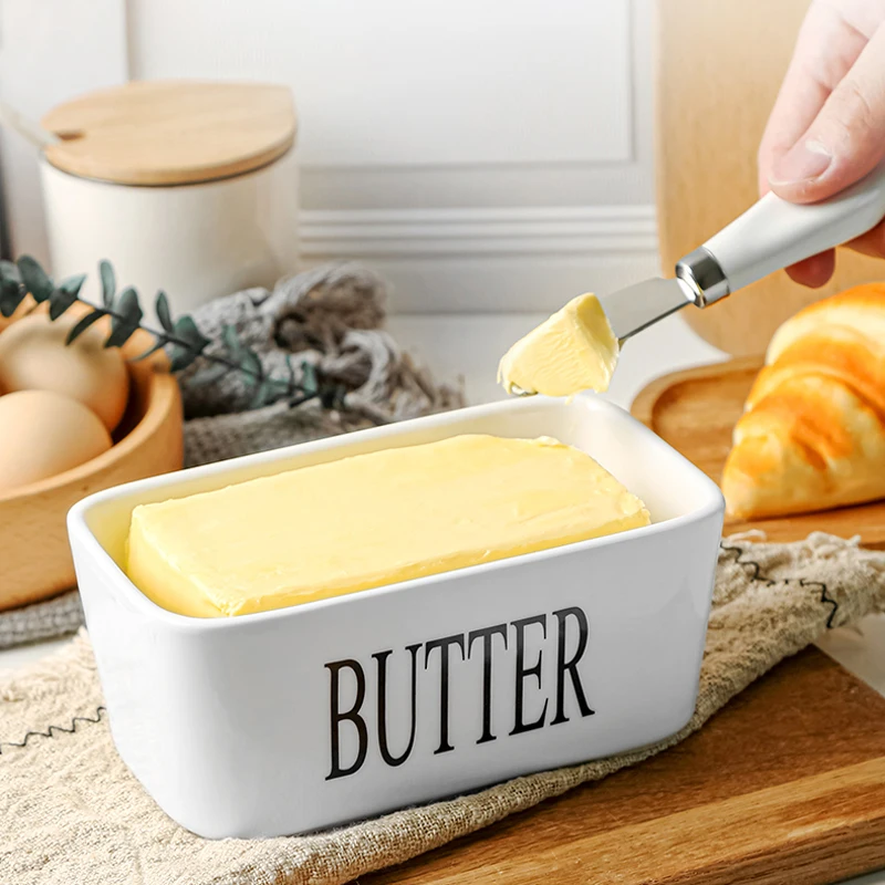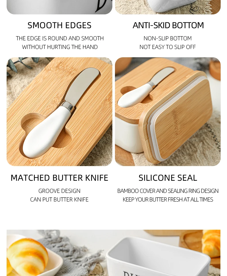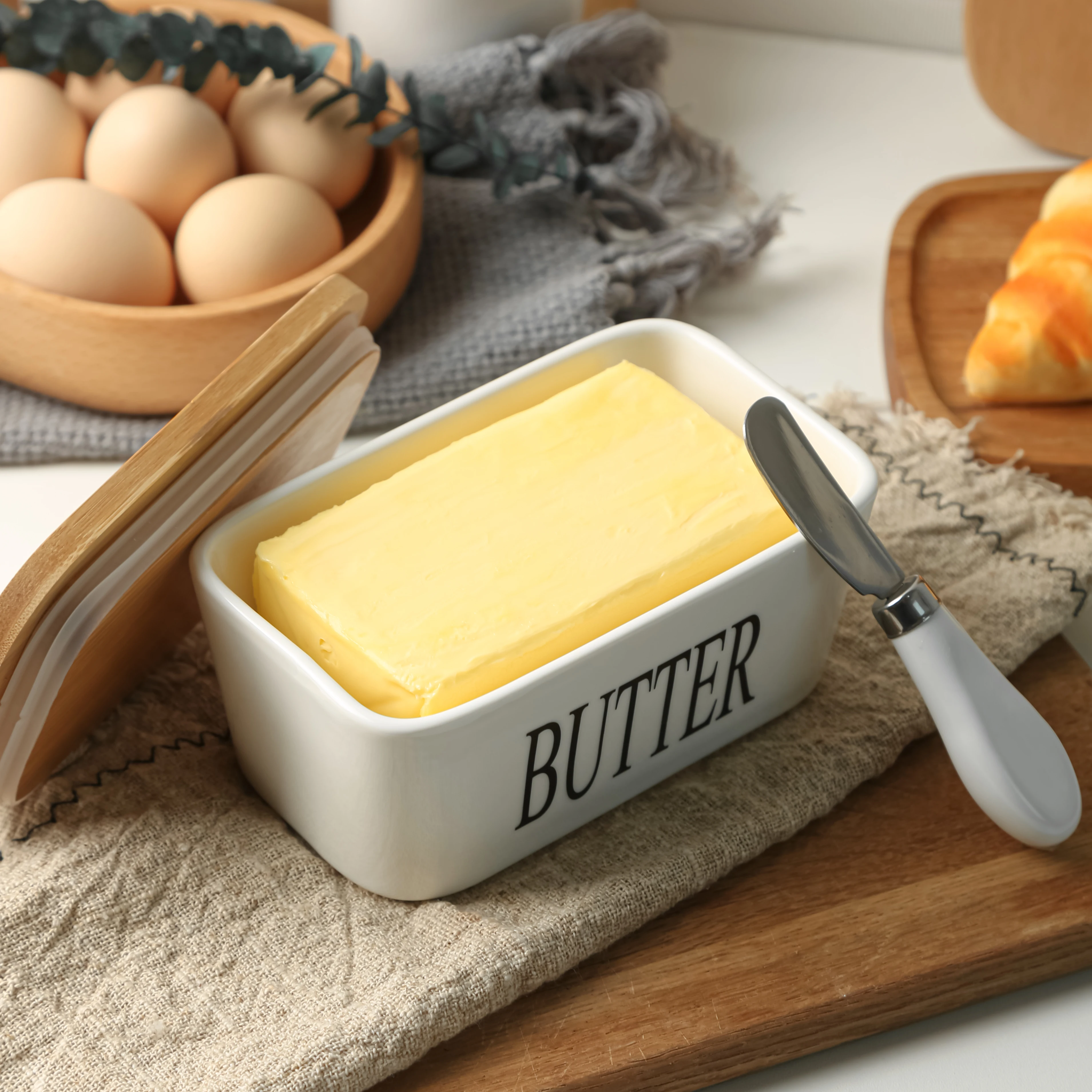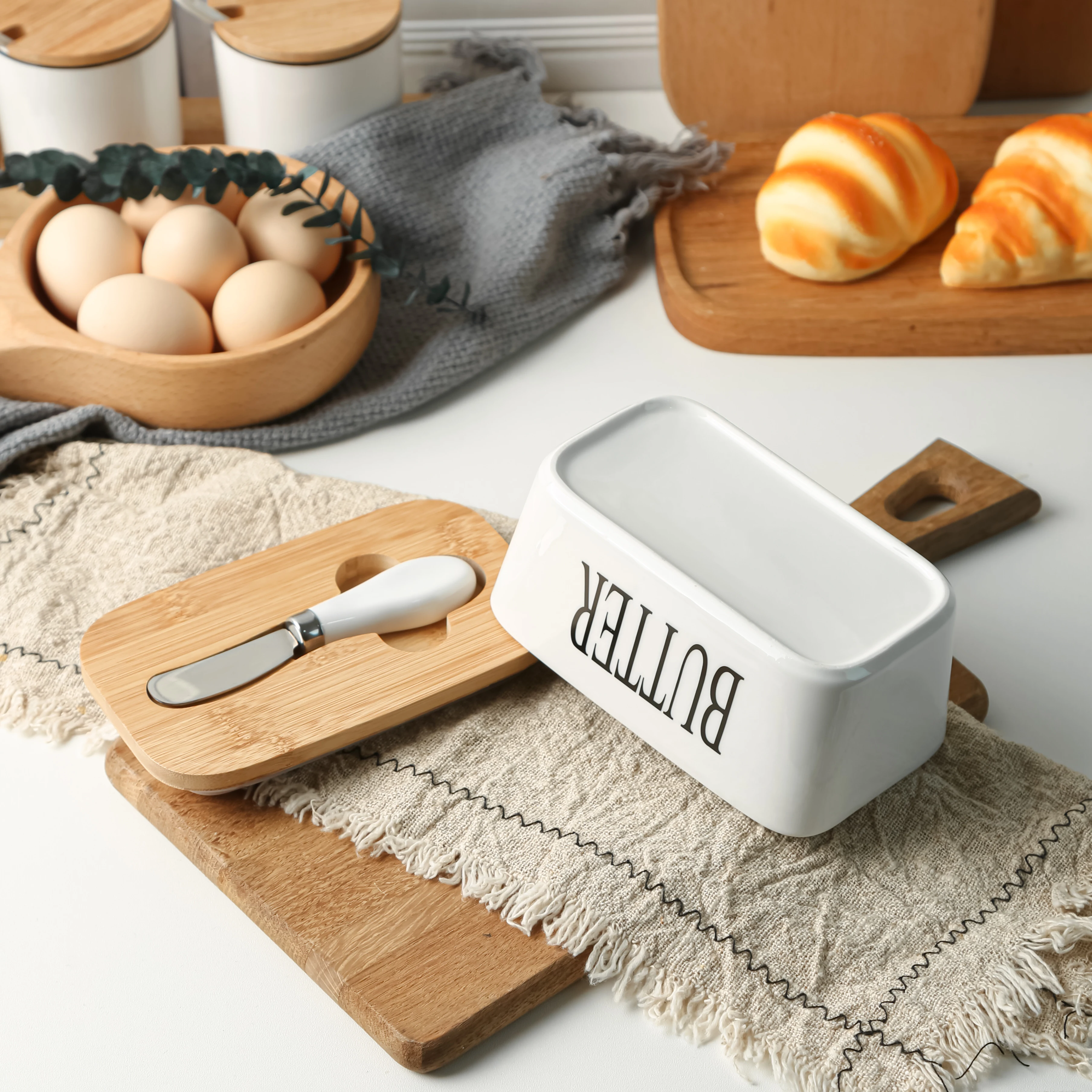 600 мл Коробка для хранения масла большой емкости керамический герметичный контейнер для сыра кухонный с деревянной крышкой Органайзер для ножа и масла