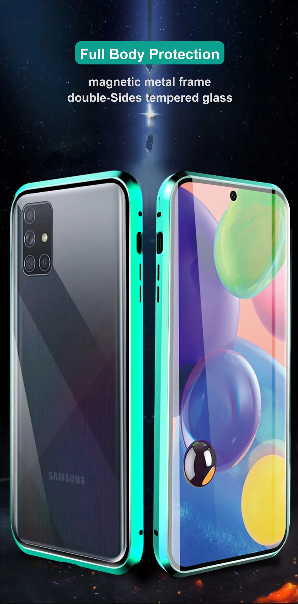 Магнитный чехол 360 для Samsung S21 FE S10 S9 S8 Plus S20 Ultra Note 20 10 9 8 A52 A31 A51 A71 A50, двусторонний стеклянный чехол