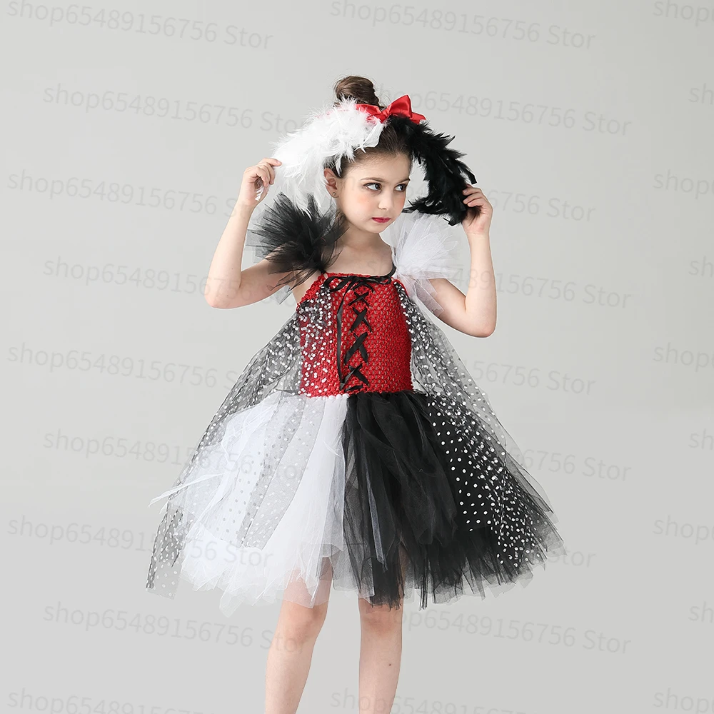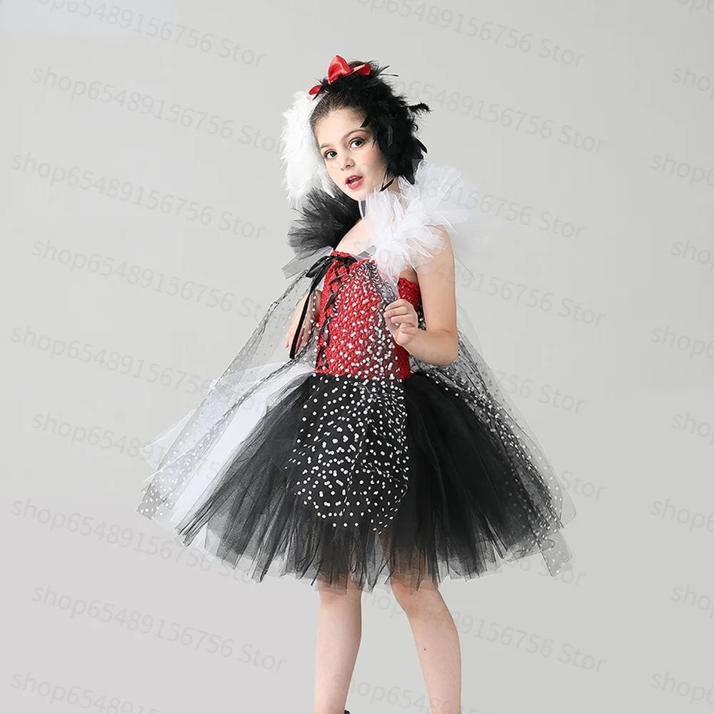 Костюм для косплея из фильма злых мадам краелла де вилл, черно-белая юбка-пачка в горошек, платье далматинской длины для девочек, Детский костюм на Хэллоуин, рождественский подарок