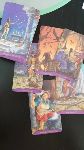 У этой колоды только старшие арканы соответствуют классическому смыслу (по колоде Уейта). Младшие арканы совсем отличаются, чтобы их понять нужно непосредственно читать автора колоды (в интернете нашла PDF с обозначениями). Прорисовка нормальная. Не вызвала у меня Вау восторга. Попробую в работе.