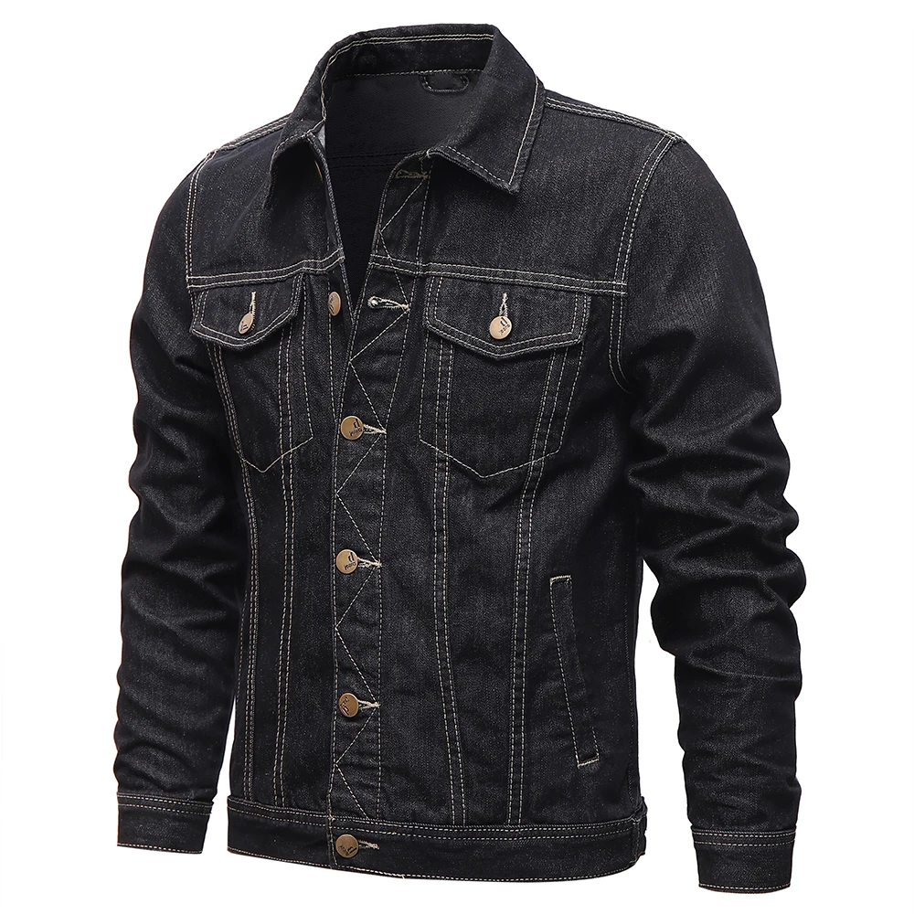 Мужская однобортная джинсовая куртка, синяя Повседневная однотонная приталенная хлопковая куртка с отложным воротником, верхняя одежда для весны и осени
