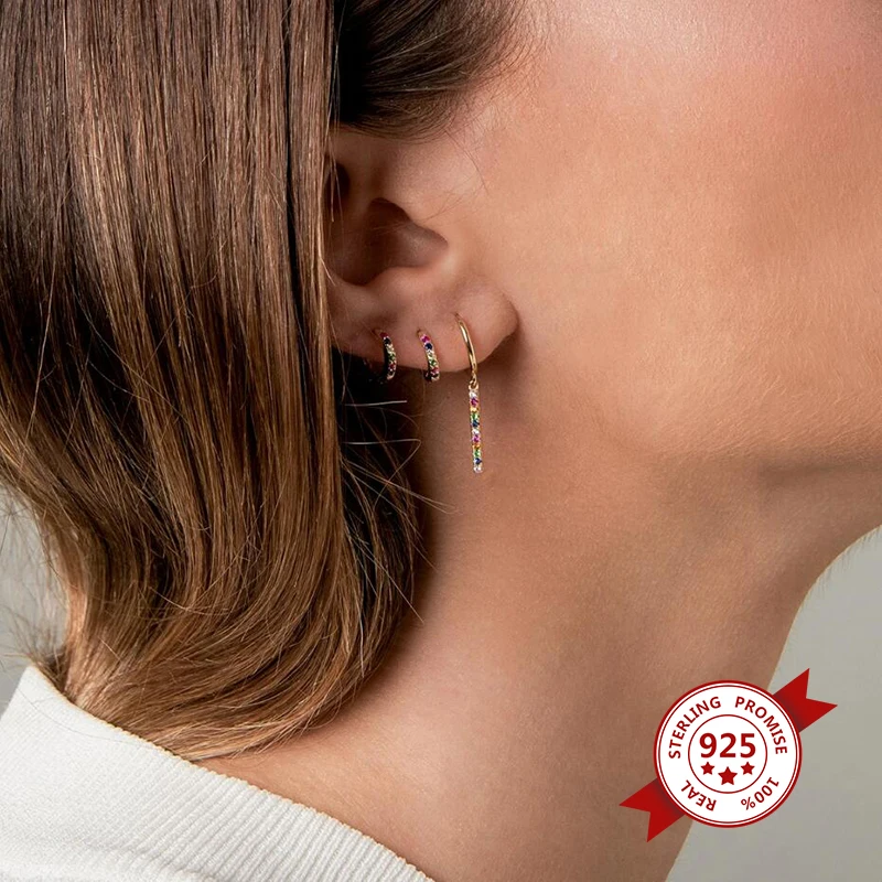 Пара серег с цветным цирконием маленькие серьги для женщин и девушек серьги-обручи с подвеской в виде капли воды