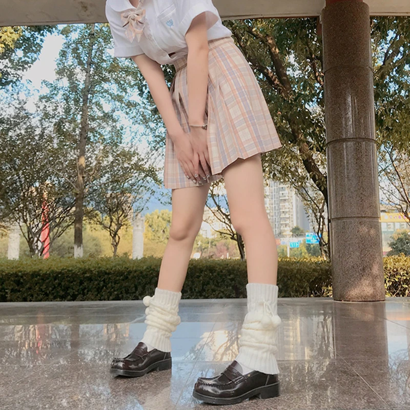 2021 модные милые однотонные вязаные теплые ноги, студенческие женские сапоги до колена в стиле преппи, осенне-зимние повседневные сапоги с рукавами для ног