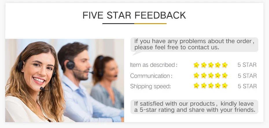 Мы поддерживаем высокие стандарты качества и стремимся к 100% удовлетворенности клиентов! Отзывы очень важна. Мы просим Вас связаться с нами, прежде чем оставить нейтральный или отрицательный отзыв, чтобы мы могли удовлетворительно решить ваши проблемы. Невозможно решить проблемы, если мы о них не знаем!